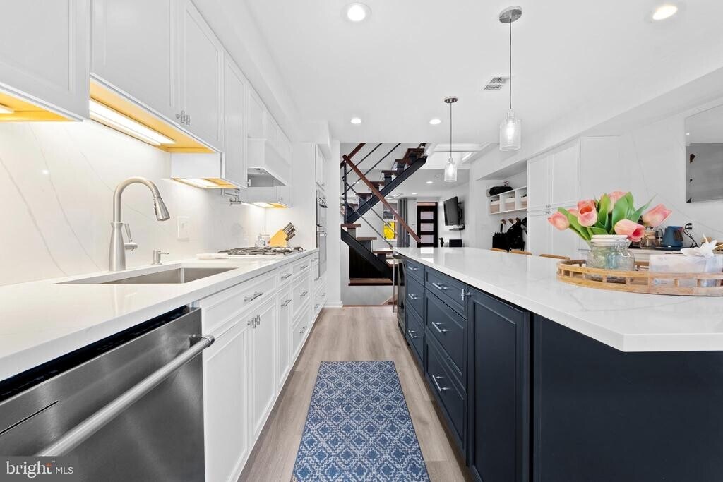 1226 Gerritt Street is a striking modern residence on a charming Passyunk Square block. Thoughtfully designed with clean architectural lines and sophisticated finishes throughout, this home offers a rare blend of contemporary style, functional living space, and luxury amenities in the heart of South Philadelphia. The main level unfolds into an expansive open-concept living and dining space anchored by a dramatic floating staircase with steel beam detailing. Natural light pours through the home, leading seamlessly to a stunning chef's kitchen renovated in 2025 and designed for both everyday living and entertaining. The oversized quartz island comfortably seats five and is complemented by custom cabinetry, stainless steel appliances, and elegant pendant lighting. A glass door opens to a private rear patio, perfect for outdoor dining, relaxing, or hosting on warm city evenings. Upstairs, the primary suite offers a true retreat with a spacious walk-in closet and a spa-inspired bathroom featuring a freestanding soaking tub, sleek double vanity, and contemporary tilework. Additional bedrooms provide flexibility for guests or a home office. One of the home's most distinctive amenities is the private sauna, a wellness escape rarely found in city rentals. Located moments from the award-winning restaurants, cafes, and shops along East Passyunk Avenue, 1226 Gerritt Street delivers modern design, thoughtful amenities, and walkable neighborhood living at the highest level.