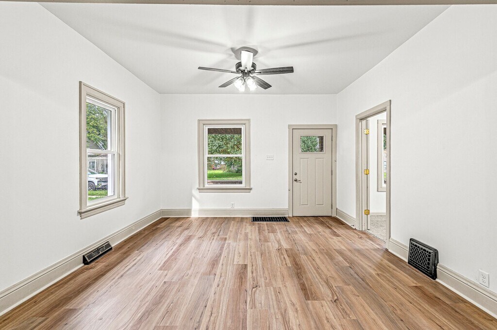 A 3-bedroom, 1-bathroom house is available for rent in South Bend. This property features a front porch, a detached garage, and a spacious basement for storage. It includes washer and dryer hookups, as well as a refrigerator, microwave, and electric stove provided by the owner. Please note that there is no central air conditioning, so tenants must supply their own window units. Tenants will also be responsible for yard maintenance and all utilities. Renters insurance is required. To sign the lease, the first month's rent and a security deposit will be required. Smoking is not permitted in the house. Section 8 is accepted. Dogs are allowed with a non-refundable pet deposit of $200, and additional dogs will incur a non-refundable fee of $25 per month. Please note that cats are not allowed. Minimum income: $4,050.00 Minimum credit score: 570+ No evictions within the last 36 months. Background check required. Rental history may be required.