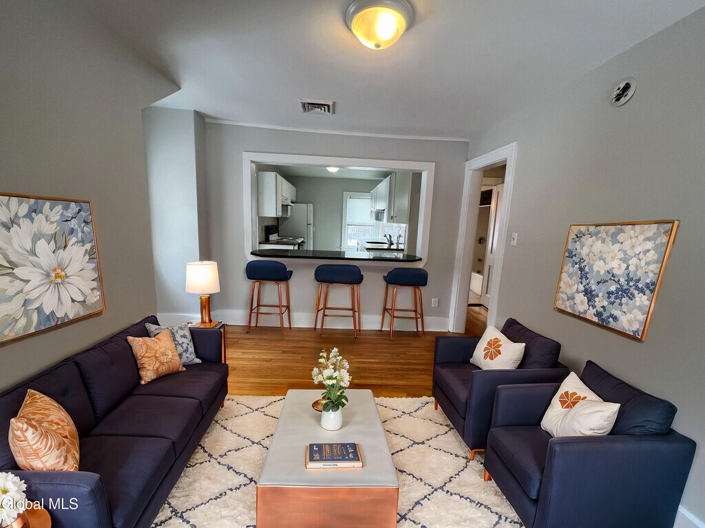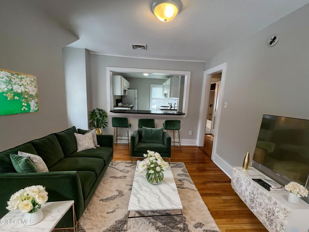 This freshly painted third-floor unit offers 3 spacious bedrooms and 1 full bathroom in the highly desirable GE Plot neighborhood. The apartment features gleaming hardwood floors,abundant natural light,ample closet space,and a warm,welcoming atmosphere throughout. Additional amenities include laundry in the basement,off-street parking,and a one-car garage available to the tenant. Outside,enjoy beautifully maintained grounds,a charming front porch,and a generous backyard. Conveniently located near Union College,Ellis Hospital,and Rivers Casino,with easy access to local dining,shopping,and transportation. Requirements: Proof of income,favorable credit,and references required. Security deposit equal to one month's rent plus first month's rent due at lease signing. Pets considered on a case-by-case basis. MLS ID 202612325