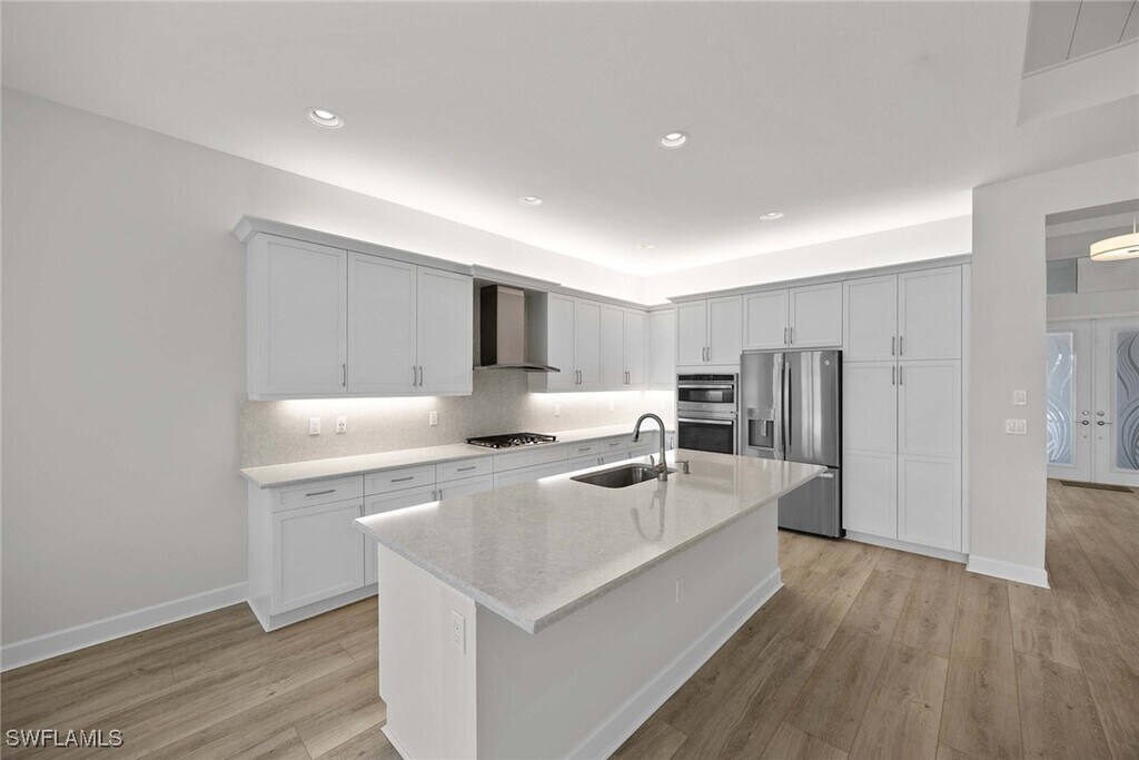 Discover luxury living in this stunning,light-filled home,available for rent immediately with a minimum lease term of seven months. This BRAND NEW,never-lived single-family home featuring 3 bedrooms plus a den and 2.5 baths offers an open and spacious floor plan with modern touches perfect for spending time with family and friends. Enjoy the peaceful backyard with a gorgeous saltwater pool and spa,an oasis of tranquility and elegance surrounded by greenery,and a spectacular lake view on a screened lanai. Popular for its versatile garage space,this “Nautilus” model features a 2-car garage plus dedicated golf cart parking. Every detail has been meticulously crafted to elevate your living experience. The gourmet kitchen is a chef's dream,featuring a spacious island,a high-end natural gas cooktop,and white quartz countertops,all illuminated by refined recessed lighting. The home's sophistication is further accentuated by tray ceilings,plantation shutters,impact glass windows,luxury plank flooring,and custom closet organizers in the primary bedroom. This property is unfurnished,providing a blank canvas for your personal touch. Located within the prestigious Valencia Trails community in Naples,immerse yourself in the vast offerings of the 43,000-square-foot clubhouse. The vibrant 55+ community offers the amenities perfect for active lifestyles: enjoy tennis,pickleball,bocce ball,and walking trails,or invigorate your routine at the state-of-the-art fitness center,resistance pool,or lap pool. Indulge in a pampering session at the massage and nail salon,unwind in the steam rooms and spa,or relax by the resort-style pool. Delight in gourmet meals at the on-site restaurant or poolside bar. There is no shortage of activities and clubs,including two dog parks for your furry friends. Incredible opportunity to enjoy paradise living in luxury in one of Naples's most desirable communities!