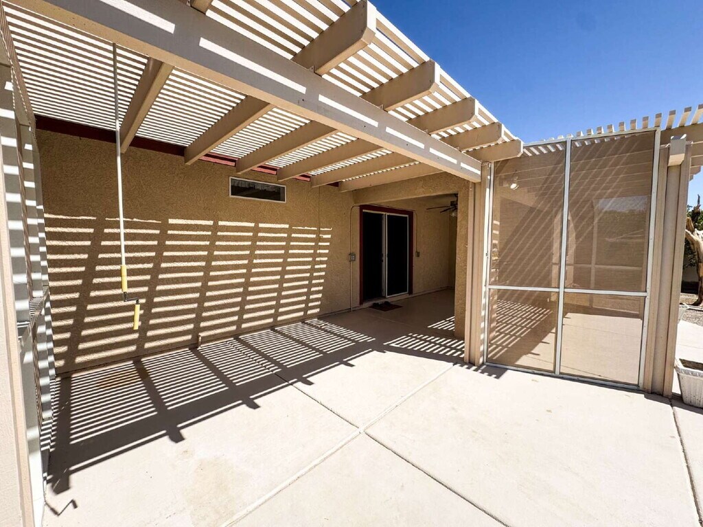 Tucked away in the tranquil community of Mesa del Sol, this 1,517 sq ft home offers a peaceful retreat with convenient access to urgent care, dining, banking, grocery stores (Sprouts & Fry’s), Starbucks, gas stations, and public transit. Enjoy well-planned infrastructure and easy freeway access in a thoughtfully developed neighborhood. Property Features: • 3 bedrooms / 2 bathrooms • Over 1,500 sq. ft. • Ample kitchen cabinets • Stainless Appliances • Expansive Kitchen Pantry • Covered Patio • Gazebo • Garage • Alarm System • Solar System • Fenced Yard for privacy • Solar Panels services included • Assigned Storage Room/Closet/Locker • Washer and dryer units • BBQ Set-Up in the backyard • Water softener and filtration system installed • Shed