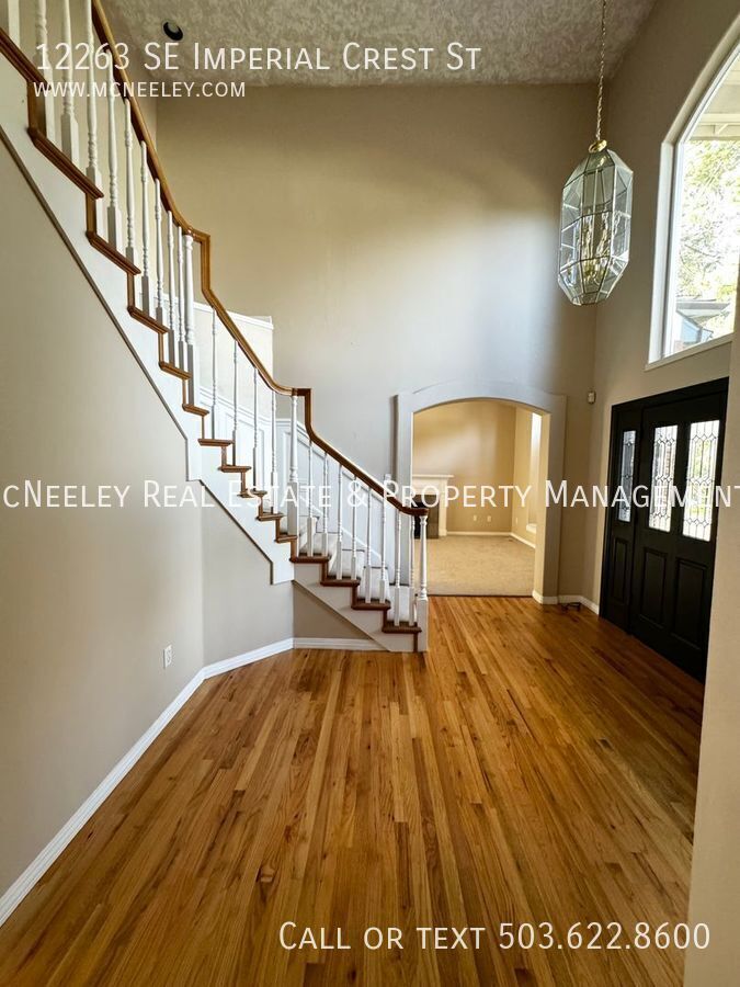 Beautiful Happy Valley home features a formal living room and formal dining room. The large kitchen features lots of storage, an island with a cooktop, an eat-in nook, and a stainless side-by-side fridge. Real hardwood floors through kitchen entry and nook. The office off the main floor has a custom reading bench and built-in desk, gas fireplace, and 3 car garage(only 2 doors are on automatic opener). The main floor also features a laundry room with an HE front-load washer and dryer. The second floor features 3 bedrooms plus a bonus room. The primary bedroom features a 6pc ensuite bath, three sinks, 1 garden tub, a walk-in shower, and a water closet. The primary bedroom also features a walk-in closet and a secondary closet. Large fenced yard with deck great for entertaining. Forced air, gas heat, and central air. ?? To Apply for this property (Use links on listing on our company website - mcneeley . com. They may not appear on third-party sites) ?? ? APPLICATION LINK: