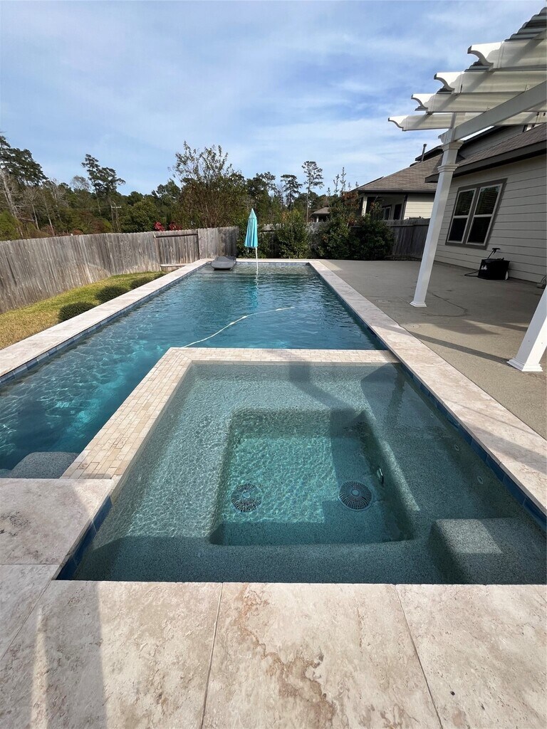 PRIVATE POOL and spacious outdoor covered area. *$200 for pool maintenance will be added to the rent* Modern design house with open living spaces. 2 bedrooms downstairs. Quartz countertop,stainless steel appliances,hard surface flooring. Fosters Ridge is zoned to the Woodlands schools and a brand new elementary school opened in the neighborhood. The community offers trails,parks and pool. Washer,dryer and refrigerator included. MLS# 59398368