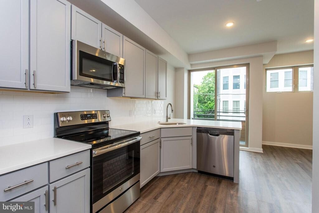 Welcome to The 7th St Commons! Located in the Olde Kensington neighborhood, this property only blocks from popular destinations. The best part about this place is what's on the inside! Enjoy having desirable city amenities like secure keyless entry, on-site dumpsters, a fully furnished communal roof deck and parking available for rent! This 2nd floor unit offers a gorgeous kitchen centerpiece with large island, sleep grey cabinetry, and upgraded appliances. The space flows into a large living area with great windows allowing in plenty of natural light.