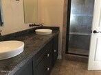 Unique floor plan! This home is located on the Eastside of El Paso and is part of a gated community. There are 3 levels in this home. Come in to the dining area and kitchen. Kitchen features granite counter tops and is equipped with refrigerator,stove/oven,range hood,dishwasher and garbage disposal. Downstairs in the basement is a spacious family room with a beautifully designed fireplace and dry bar. Upstairs are 2 bedrooms including a master bathroom with double sinks and a big walk-in shower with sitting area.