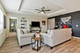 This home is an absolutely stunning, light-filled and effortlessly stylish, this single-story home in Haslet offering modern design and low-maintenance living. LVP flooring flows throughout the spacious open floor plan, creating a warm and inviting feel. The living room with its stylish accent wall offers a tray ceiling and opens to the dining and kitchen area with eat-up island, quartz countertops, a stylish tile backsplash, and an upgraded sink that make both cooking and entertaining a breeze. The primary suite is a true retreat, with a marble double vanity, metal framed arched mirrors, and a custom-built closet with added storage. The upgrades continue throughout with upgraded plumbing and light fixtures elevating every space. Step outside to the expansive private backyard with an extended patio, perfect for relaxing or hosting gatherings. Plus, enjoy the perks of a finished & painted garage with epoxy floors and access to neighborhood trails and a playground just minutes away. Ample nearby recreation, shopping and dining makes this Elizabeth Creek property a great place to call home for your next lease! Refrigerator, washer and dryer included!