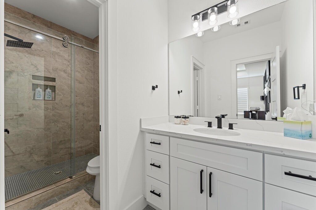 Conveniently located in sought-after Spring Branch,this two-story home offers 3 bedrooms,3.5 baths,a spacious game room,and 2,432 sq. ft. of modern living. Enjoy a large backyard with no rear neighbors,a 2-car garage,and an open floor plan with high-end finishes. The home features no carpet,abundant natural light,and a centrally located laundry room with full-size connections. The kitchen showcases quartz countertops,a designer backsplash,stainless steel appliances,and plentiful storage. Centrally located between Hobby and IAH airports,and just minutes from CityCentre,Memorial City Mall,and major highways,this property is also zoned to highly regarded Stratford High School. MLS# 87259750