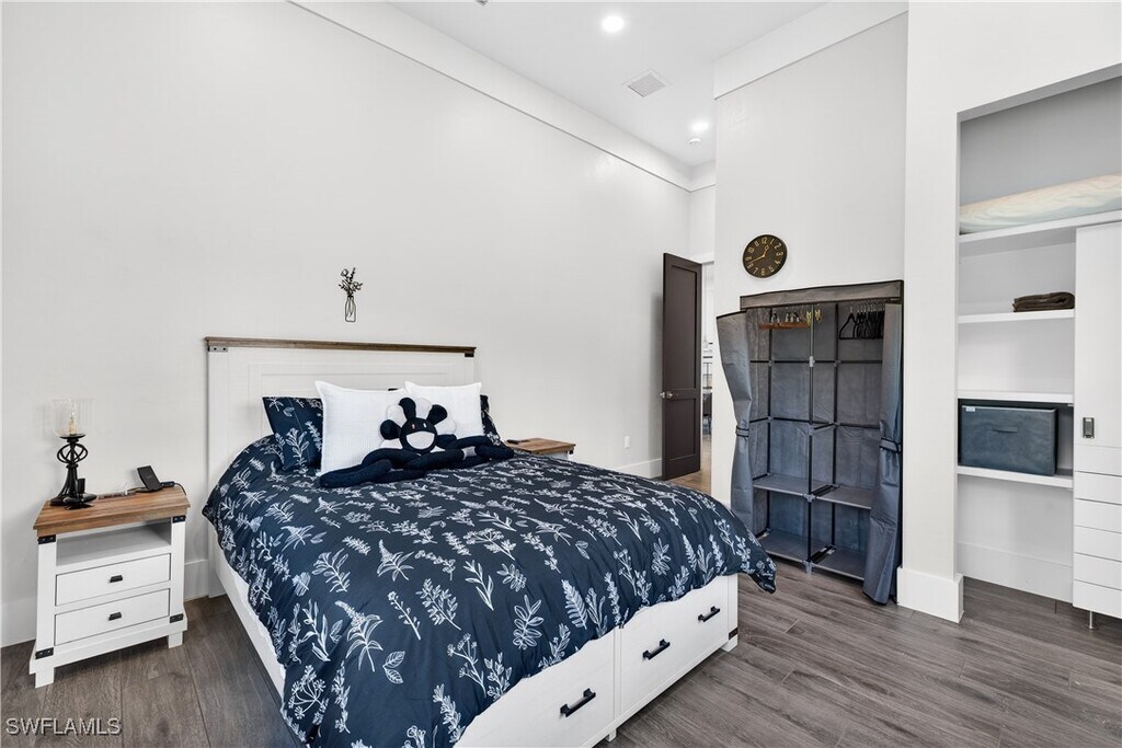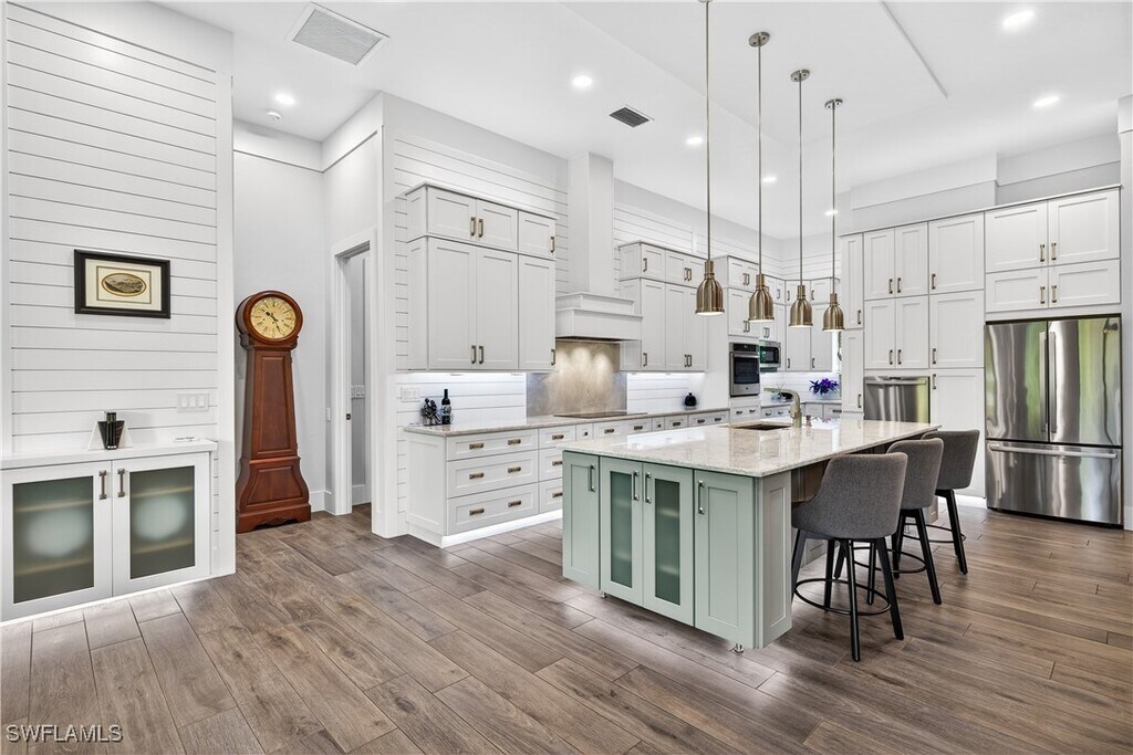 Located in the Bell Villa enclave of Bonita Springs,this beautifully designed short-term rental sits on a private one-acre homesite and offers 2,848 square feet of thoughtfully designed living space. The home features three bedrooms,all with en-suite baths,plus an additional half bath,providing comfort and privacy for guests. An open-concept layout filled with natural light flows into a chef’s kitchen with expansive cabinetry,stone countertops,and premium finishes,ideal for entertaining or extended stays. The property also includes a separate private office with an adjoining sitting area,a dedicated workout room,and a two-car garage. Residents and guests enjoy access to amenities available for use in Bonita Terra,all just minutes from Bonita Springs beaches,dining,and shopping. A rare opportunity for a high-end short-term rental in a prime location.