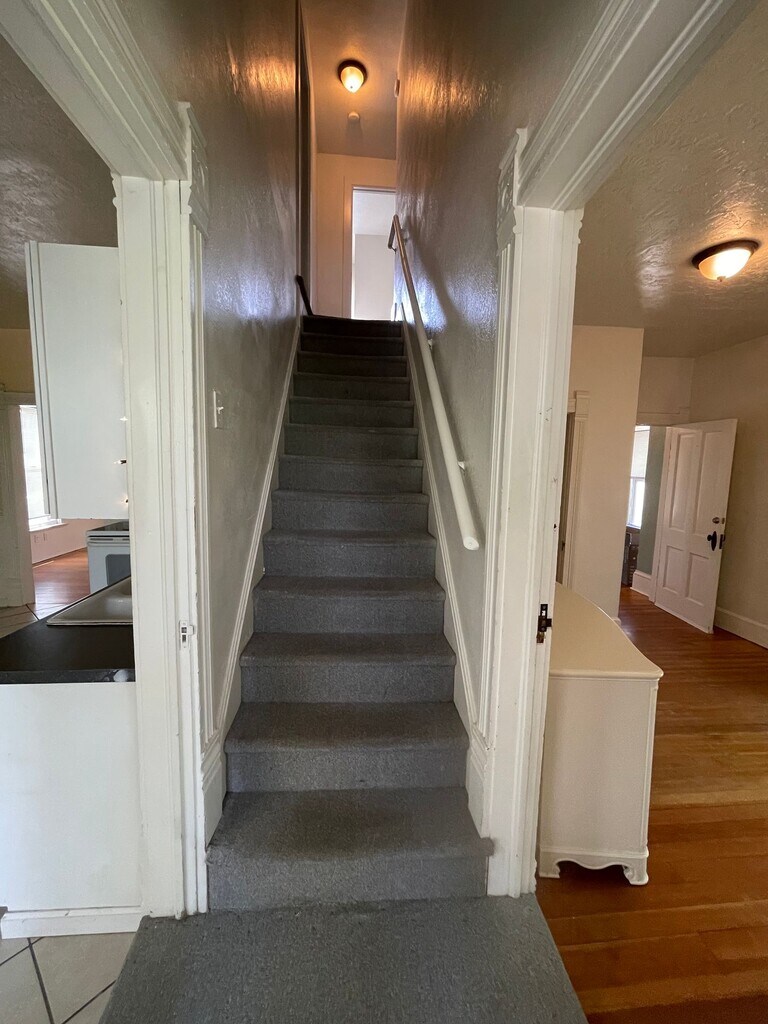 A real doll house! Two stories with high ceilings and very large bedrooms and closets. Four bedrooms total , one one the main floor, with the other three bedrooms on the second floor. One full bath on the main floor and a second full bath with a jetted tub on the second floor. Large laundry room with two walk-pantries add to its functionality. This unit has a large dinning room and a porch on the front with a huge closed-in porch in the rear of the house. Tons of large windows and original custom woodwork on the main floor make this one a must see! Includes all updated plumbing and electrical as well as finishes. Large corner lot with mature landscaping. Walk- in closets. Huge unfinished basement for lots of storage. Only $560 per person