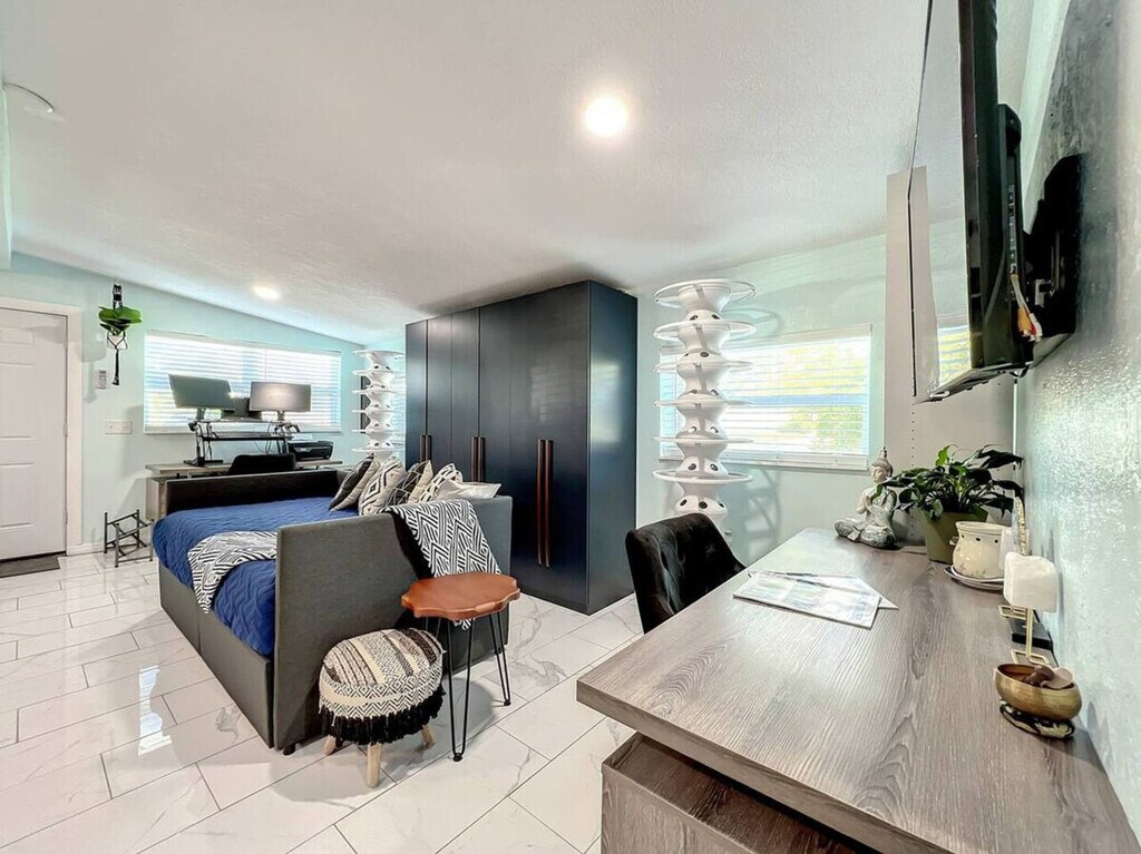 Save 12% on this cozy 1-bedroom retreat just 10–15 minutes from Downtown Orlando, Thornton Park, and the Science Center. Feel at home with a queen bed, daybed, private bath, full kitchen, and dedicated workspace. Perfect for both work and play, this private getaway offers comfort and convenience with easy access to Orlando’s top attractions. Step into a thoughtfully designed space that blends comfort and convenience for a restful stay. Enjoy a peaceful night's sleep on the queen bed with soft linens and plush pillows, or relax on the daybed with trundle. The private bathroom is stocked with fresh towels and toiletries, and the bright and airy space includes ample storage and a desk space for remote work. Parking is limited to 2 compact cars per unit. Up to 2 small dogs are allowed per stay for a fee of $60 each. House-trained and non-aggressive dogs only, with a crate required if left alone indoors and a leash required outside. No pets on furniture, and please bring your pet’s bedding. This community is known for its tranquil residential atmosphere, characterized by tree-lined streets and well-maintained homes, offering residents a peaceful living environment. Downtown Orlando is approximately 10 minutes away by car, providing easy access to a vibrant array of dining, entertainment, and cultural venues. The Orlando International Airport is around a 20-minute drive, facilitating convenient travel options. Universal Studios Florida is located about 25 minutes away, making it accessible for weekend adventures. Quiet hours are from 8:00 p.m. to 8:00 a.m. to ensure a peaceful stay for all guests. Check-in is at 4:00 PM and check-out is at 10:00 AM, with late check-out potentially resulting in additional fees. Smoking is prohibited inside the property and will result in an automatic complaint. As part of a duplex, you may hear noise from neighboring guests, so please keep noise levels low during quiet hours. Lock all doors when leaving, and do not move furniture. Windows do not open, so please do not force them. The patio and parking areas are shared with other guests. The apartment includes a small but functional desk space for remote work or planning your Orlando adventures. A laptop computer is not included.