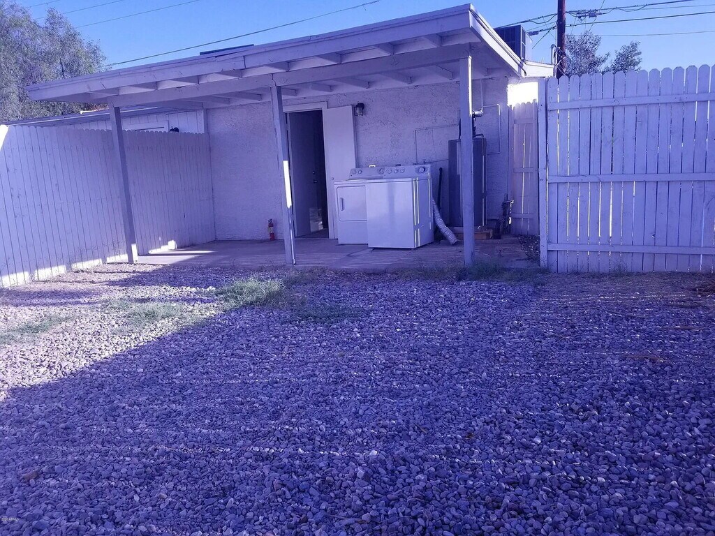 Discover comfortable single-level living in this spacious 1-bedroom, 1-bathroom, 1,008 sq ft home located in a quiet North Phoenix neighborhood. As a desirable corner unit, it offers added privacy along with a large private backyard—perfect for relaxing outdoors, gardening, or enjoying extra space for pets. The interior features a practical mix of laminate and carpet flooring and includes essential appliances such as a refrigerator, range/oven, dishwasher, and dryer, plus washer and dryer hookups for your convenience. The home is equipped with central AC, and tenants are responsible for electric and gas utilities. The layout is fully single-level with no steps, making it easy and accessible for everyday living. The oversized 1-bedroom design provides more room than most apartments, creating a comfortable and open feel throughout. Whether you're cooking, entertaining, or working from home, the generous interior space gives you the flexibility you need. Located near the North Mountain area, this home sits close to popular hiking trails, local parks, and the Pointe Hilton Resort corridor. Residents will enjoy easy access to I-17 and SR-51, making commuting quick and convenient. The neighborhood is close to shopping and dining options, including Fry’s, Walmart, and a variety of local restaurants and coffee shops. Public transportation is also convenient, with several bus lines running along 7th Street, Cave Creek Road, and Northern Avenue, offering easy travel throughout the city. This is a great opportunity to live in a central Phoenix location with the rare bonus of a private backyard and extra interior space. $45 background fee per adult person 18+ $100 Move in fee $18.50 monthly admin fee on the rent $75 Monthly utilities fee WST $13.50 Tenant Liability Insurance