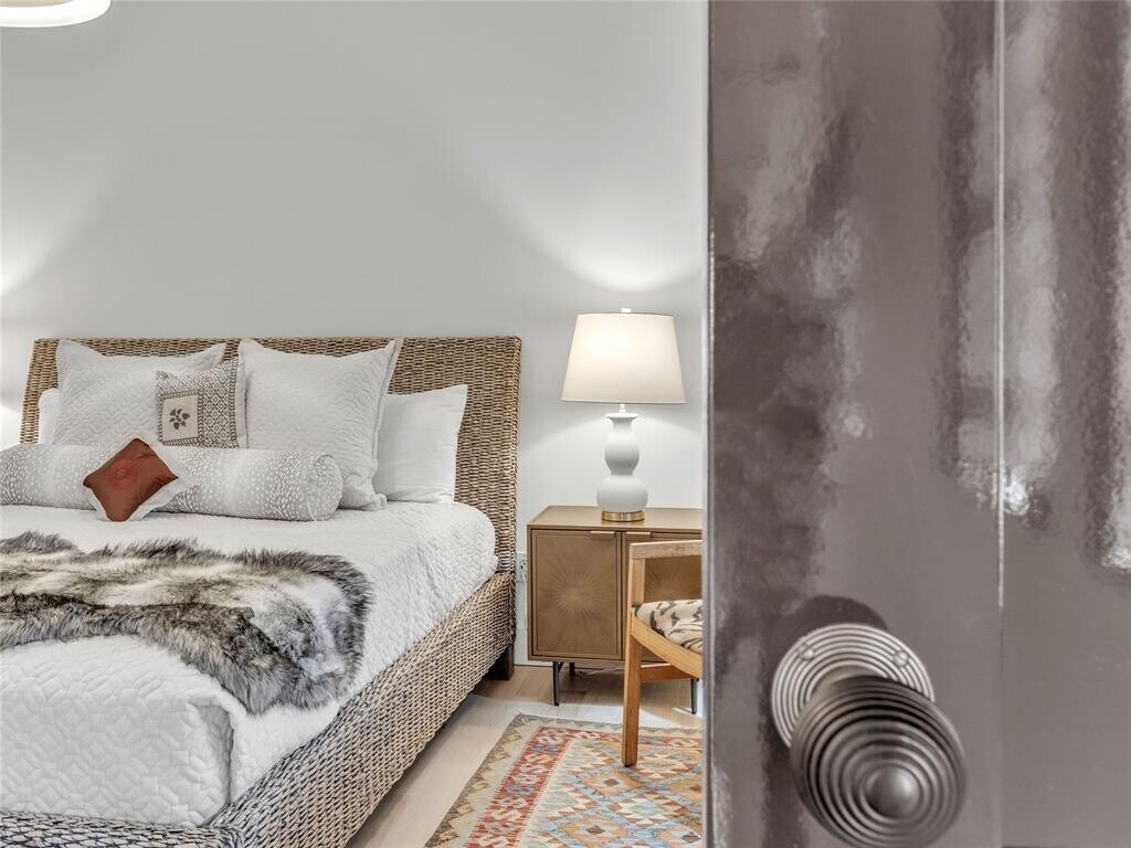 This Villa Teresa Residence is the Lowery Flat located on the 2nd floor at 1229 N. Dewey Avenue,tucked behind towering oaks. Villa's modern architecture is embodied in this 2 bedroom,2 bath with 13’ tall vaulted ceilings in the living and kitchen space. This singularly unique home boasts 1321 SF of living space,an attached 2 car garage,a large covered balcony,as well as wonderful views of the Villa Teresa Campus. This unit is available immediately for lease with a minimum of 30 day lease agreement. Top of the line finishes including Toto and Symmons fixtures,Miele Appliances,and more . Interiors have been carefully constructed with intention and purpose to include hardwood floors in all common spaces and Pella architectural series windows. Optional bedroom space used as additional living room space currently. Unit comes fully furnished as well as all utilities included and Bi weekly cleaning service included in the lease. Pets to be considered on a case by case basis.