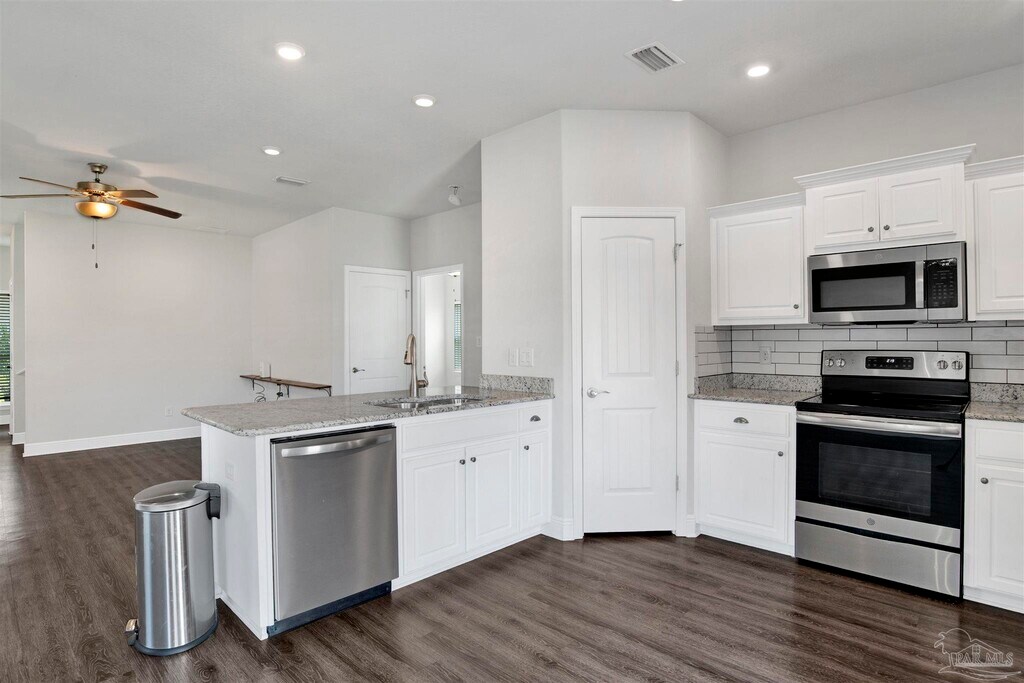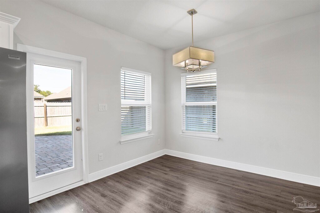 Welcome to this beautifully landscaped 4-bedroom,2.5-bath two-story home offering comfort,convenience to NAS Pensacola,shopping,and Perdido Key beaches. Step inside to an open living area that flows seamlessly into the kitchen and dining spaceideal for entertaining or everyday living. The kitchen features stainless steel appliances,granite countertops,and plenty of cabinetry for storage. A glass door leads to the fully fenced backyard,perfect for outdoor gatherings,pets,or simply relaxing in your private space. Enjoy luxury plank flooring in all wet areas and plush,stain-resistant carpet in the bedrooms and common spaces for added comfort. Upstairs,youll find spacious bedrooms,including a large primary suite with an ensuite bath. This property is pet friendly with breed restrictions based on HOA requirements. Wash and Dryer hook ups in the home.