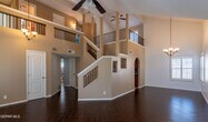 Beautiful move-in ready corner-lot home. The landscaped front yard provides great curb appeal. As you walk in you are welcomed by a spacious living area featuring a cozy fireplace. Upstairs you will find a thoughtful layout featuring all bedrooms and a loft for additional living space. Refrigerated air and elegant shutters throughout the home provide comfort and style. Enjoy an insulated garage with full heating and cooling. The backyard is perfect for entertaining with a large pergola,low maintenance landscaping and a heated pool for perfect year-round comfort. Not to mention the excellent location,just minutes from some of the newest restaurants and shopping centers. Schedule your showing today!