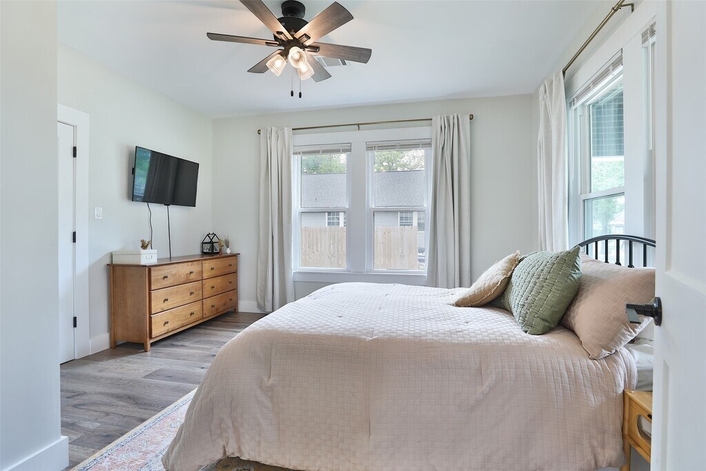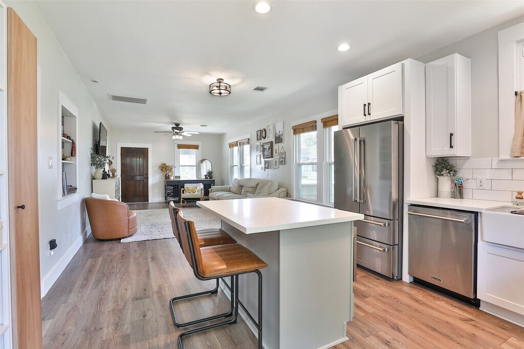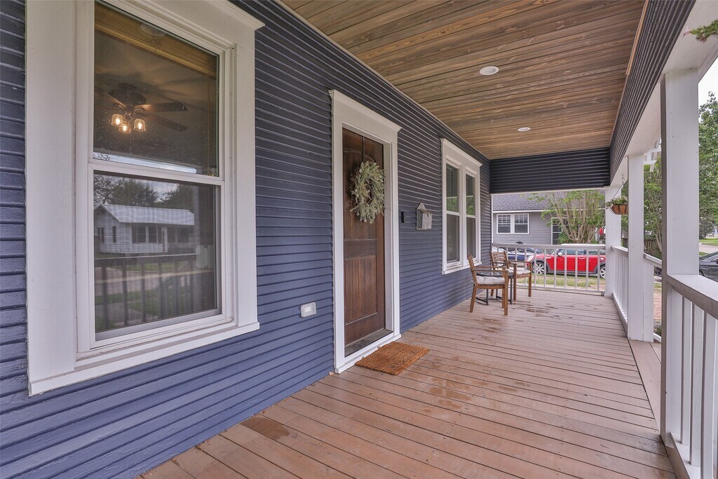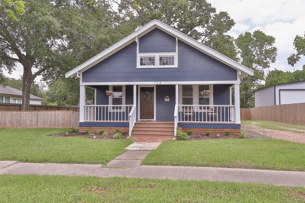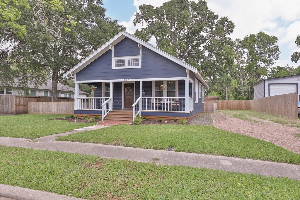 Cozy 1920 Imperial Sugar bungalow! Total renovation in 2024. Charming open den/dining/kitchen with two bedrooms and full bath on large .23 acre lot. Kitchen with pot filler,farm house sink,gas range,quartz counters and island. Bath has separate shower and vintage claw foot tub. Original metal roof coated will likely last another 100 years! PEX Plumbing. No HOA/Deed Restrictions but there is zoning with light conservation for The Hill,Sugar Land's first community! Close to 90A,Space Cowboys Constellation Field,museums,farmers market,local community winery,parks,churches and schools. Step back into time with a charming walkable community with Acorn Lamp posts,mature trees and front porch living! Easy living! MLS# 60401932