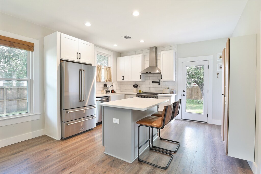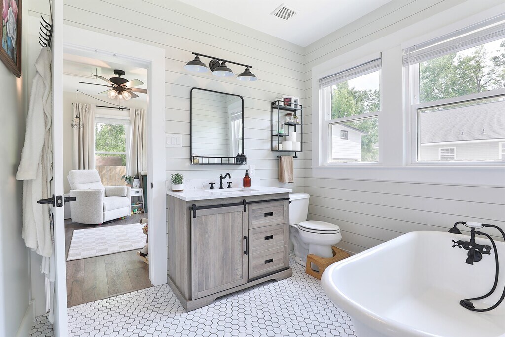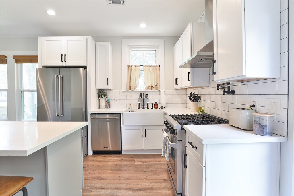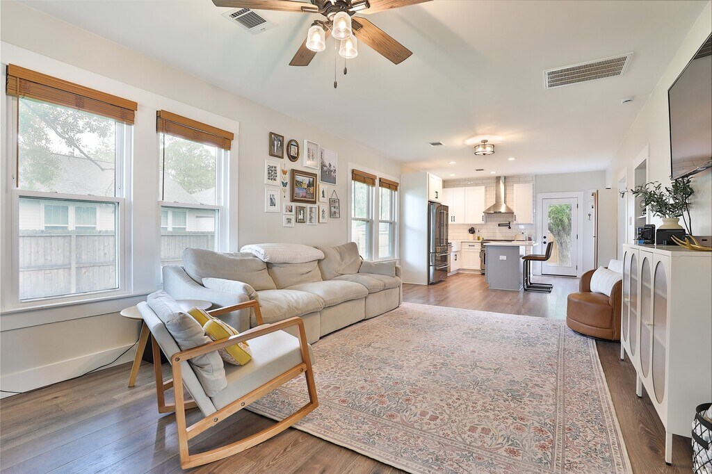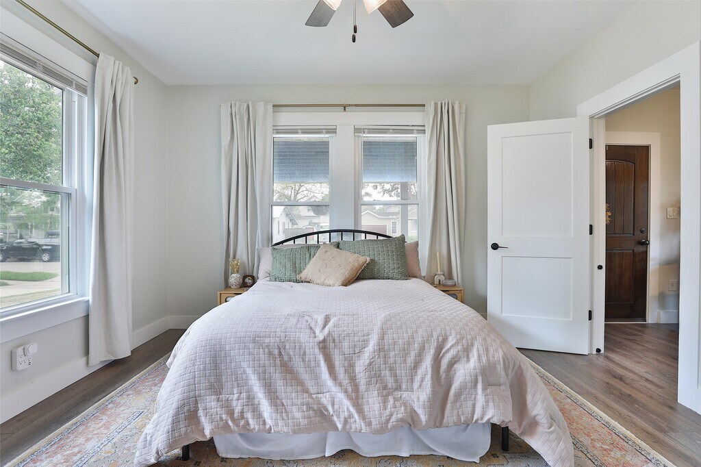 Cozy 1920 Imperial Sugar bungalow! Total renovation in 2024. Charming open den/dining/kitchen with two bedrooms and full bath on large .23 acre lot. Kitchen with pot filler,farm house sink,gas range,quartz counters and island. Bath has separate shower and vintage claw foot tub. Original metal roof coated will likely last another 100 years! PEX Plumbing. No HOA/Deed Restrictions but there is zoning with light conservation for The Hill,Sugar Land's first community! Close to 90A,Space Cowboys Constellation Field,museums,farmers market,local community winery,parks,churches and schools. Step back into time with a charming walkable community with Acorn Lamp posts,mature trees and front porch living! Easy living! MLS# 60401932
