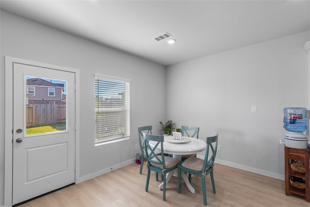 Two-story 2025 Century Homes residence in Lakes at Black Oak offering a well-designed open floor plan. The main level features a spacious great room and dining area,along with a kitchen with center island,quartz countertops,and included appliances. A conveniently located powder bath completes the first floor. Upstairs,the primary suite includes a walk-in closet and private bath with walk-in shower. Secondary bedrooms are well sized,and a versatile loft provides additional flexible living space. Interior features include smart home technology,ceiling fans,energy-efficient systems,and a tankless water heater. Exterior features include a fenced backyard,covered patio,sprinkler system,and two-car garage. Community amenities include walking trails,lakes,playground,and splash pad,with convenient access to Woodlands Parkway,FM 2978,and SH 99. MLS# 58199909