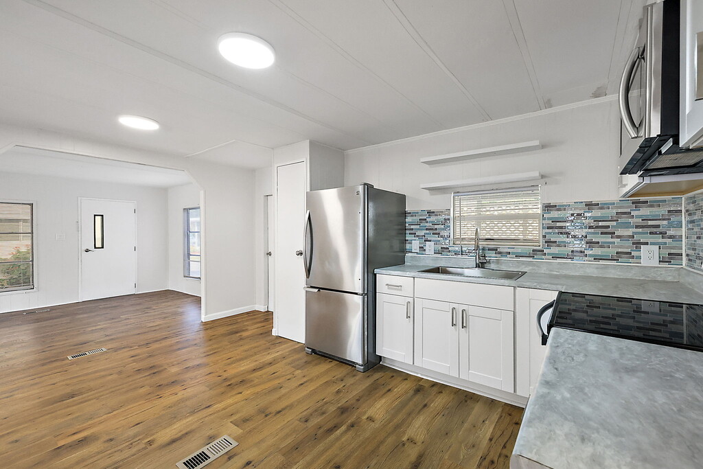 Rent To Own in a 55+ community. Rent DOES NOT INCLUDE LOT FEE TO THE COMMUNITY. Our newly listed 2-bedroom (price exclude lot rent), 1.5-bathroom manufactured home, fully renovated, nestled in the sought-after 55+ community of Mid Florida Lakes. This gem has undergone a comprehensive renovation, boasting BRAND-NEW flooring throughout, NEW kitchen cabinets, sleek stainless steel appliances, a NEW standing shower, and stylish NEW vanities. Washer and dryer are available as well. Community amenities, including swimming pools, clubhouse, gym, and a variety of recreational activities —all included in your rent. which is in the low 900s and includes Taxes, water, sewer and Landscaping. This age-restricted community requires park approval for all tenants, a clean background. Financial stability is key, with an income requirement of 2.5X the rent. Don't miss out on the opportunity to make this house your home. Contact us today to schedule a viewing and experience the allure of Mid Florida Lakes for yourself.