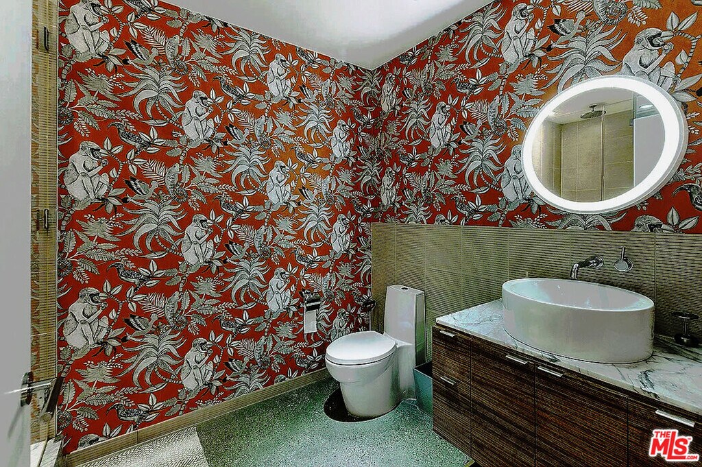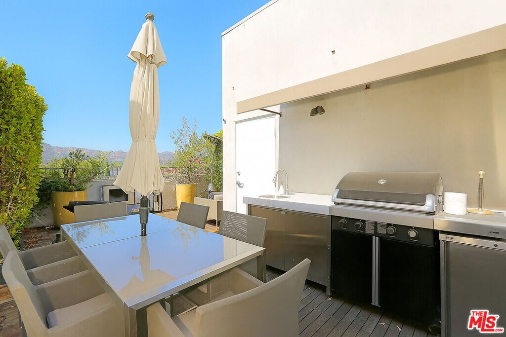 Available November 1, 2025. Striking tri-level loft by Pugh + Scarpa showcasing soaring 20-ft ceilings, polished terrazzo, and wide-plank oak floors. Sun-drenched interiors open seamlessly to a private patio, while the chef's kitchen features Caesarstone counters and custom cabinetry. A rooftop deck with outdoor kitchen, dining, and lounge captures sweeping city and Hollywood Hills views. Modern comforts include smart home controls, in-unit laundry, and secure parking for two. Ideally located near the Beverly Center and just steps from West Hollywood in a prime Mid-City setting. MLS# 25582695
