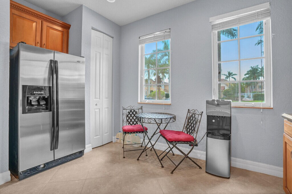 Welcome to 123 Mulligan Place, a contemporary haven nestled in the vibrant community of Jupiter, FL. This pristine low-rise residence boasts a modern charm with its new roof and stylish tile floors, offering a seamless blend of luxury and convenience. Spread across 2,116 square feet of thoughtfully designed living space, this home features four spacious bedrooms and three and a half elegant bathrooms. Each room is crafted to provide comfort and privacy, perfect for both relaxation and entertaining. Step into the welcoming foyer that leads you into a bright, open-plan living area. The state-of-the-art kitchen flows effortlessly into the dining and living spaces, ideal for hosting gatherings or enjoying quiet evenings at home. The garage provides secure parking, while additional