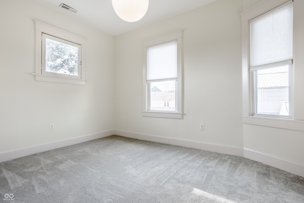AVAILABLE FOR IMMEDIATE OCCUPANCY! - This bright and spacious townhome is ideally located in historic Holy Cross neighborhood - just blocks from Highland Park,bike trails and some of Indy's best local dining! Take in the skyline views from your covered front porch. Inside,enjoy raised ceilings,original hardwoods and a decorative fireplace. The main floor features an updated kitchen and open living/dining rooms with plenty of space for hosting. Convenient mud room leads to 2 assigned off-street parking spaces. Main level laundry room (washer and dryer included) plus a half bath complete the first floor. The second floor features 2 sizable bedrooms - each with access to their own full bathroom. Both bathrooms have been updated with tasteful tile and finishes. There's even a third level bonus room for additional living space,guest space or your home office! Unfinished basement offers room for additional storage. Landlord maintains the lawn/landscaping and covers the monthly security system monitoring fee! Clean and refreshed with new carpet,paint and fixtures. This is the perfect place to enjoy low maintenance downtown living! Based on information submitted to the MLS GRID as of [see last changed date above]. All data is obtained from various sources and may not have been verified by broker or MLS GRID. Supplied Open House Information is subject to change without notice. All information should be independently reviewed and verified for accuracy. Properties may or may not be listed by the office/agent presenting the information. Some IDX listings have been excluded from this website. Prices displayed on all Sold listings are the Last Known Listing Price and may not be the actual selling price.