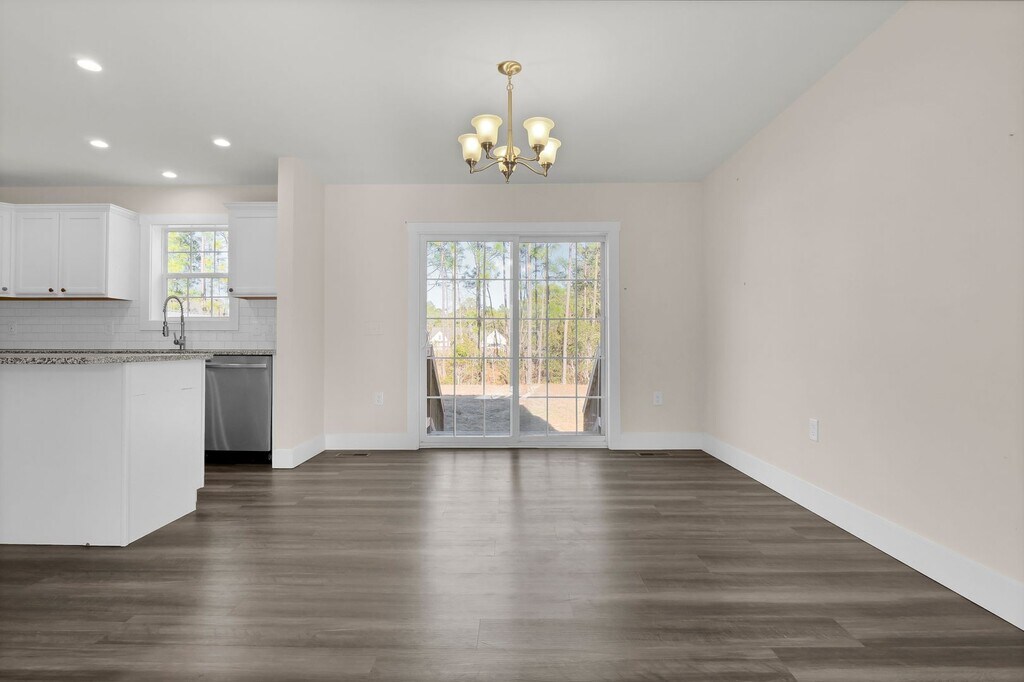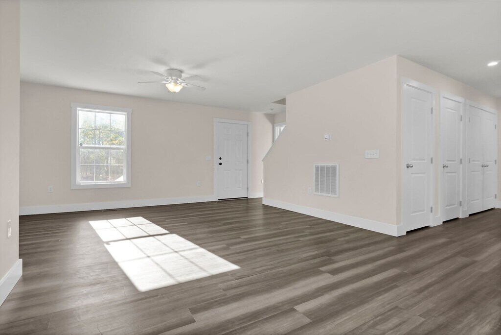 This 3-bedroom, 2.5-bathroom home with a bonus room is located in Belvedere Plantation in Hampstead, close to Topsail Island beaches. With 1679 sq ft, it features a two-story layout and an open floor plan. All appliances, including the washer, dryer, and refrigerator, will stay with the home. It has been well cared for by a family for the last two years and has a neutral color scheme. The house sits at the end of the street next to a tree line, ensuring privacy and tranquility. The covered front porch welcomes you inside. As you enter, you'll find a spacious living and dining area. There's also a separate office/flex room that can be used for various purposes. The kitchen includes granite countertops and a stylish white subway tile backsplash. Upstairs, you'll discover 3 bedrooms. The master bedroom has a walk-in closet and an attached bathroom with a walk-in shower. Enjoy the large backyard with privacy from the tree line behind. Apply Today!