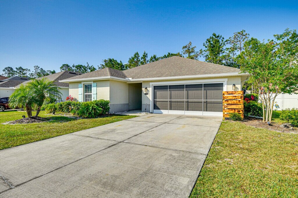 Feel at home in this 3-bedroom, 2-bath home in Deer Creek of Hunter's Ridge, just 8 miles from downtown Ormond Beach. This single-story home requires a small step to enter. This home features 2 Smart TVs, an entertainment center with a fireplace, and a 6-person dining table. The kitchen is equipped with a refrigerator, dishwasher, stove/oven, microwave, cooking basics, dishware and flatware, and a Ninja dual drip/pod coffee maker. Enjoy the convenience of free Wi-Fi, central A/C and heat, and a washer and dryer. Linens and towels are provided. Relax on the furnished screened lanai and enjoy the spacious yard with a Blackstone grill and charcoal grill. Pets are welcome with a $75 fee. Enjoy community amenities such as an outdoor pool, park, and playground. Explore nearby attractions like Romano Beachfront Park and Tiger Bay State Forest. Smoking, events, parties, and large gatherings are prohibited. Guests must be at least 25 years old to book. The hot tub is unavailable for guest use. [SI]