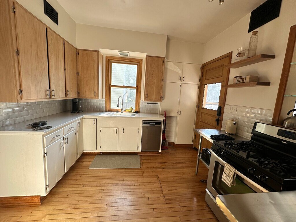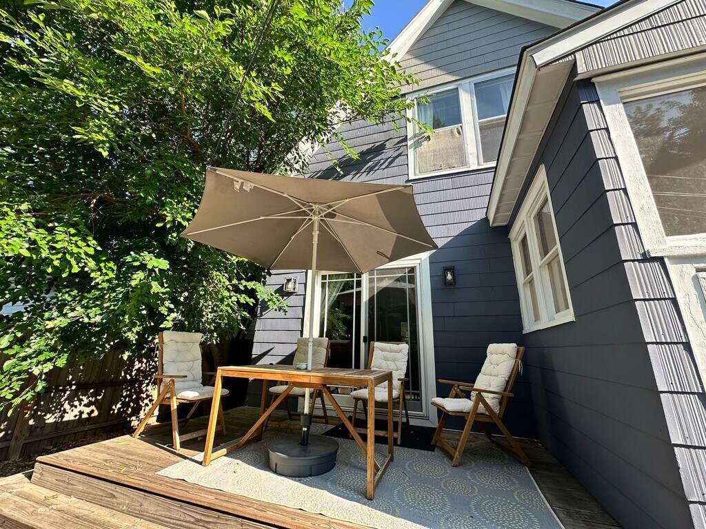 This stunning turn-of-the-century home offers a rare combination of historic charm and modern convenience, fully furnished and move-in ready. Featuring three spacious bedrooms and two bathrooms, the home showcases beautiful inlaid wood floors, high ceilings, and generous dining and living rooms perfect for both entertaining and everyday living. The fully equipped kitchen includes all appliances and utensils for gourmet cooking, while the bright sunroom, lined with windows, creates a serene space to relax. On the lower level, a cozy bonus room is perfect as a wine cellar or private retreat. Step outside to a fully fenced backyard with a furnished patio and fire pit—your own private oasis for outdoor gatherings. The two-car garage includes a pair of bicycles for your use, with additional off-street parking available. Located within walking distance of shops and dining, this home comes with high-speed internet, lawn care, snow removal, and 24/7 maintenance support. Enjoy all the comforts and style of a beautifully curated AirBNB without the high nightly rates.