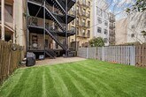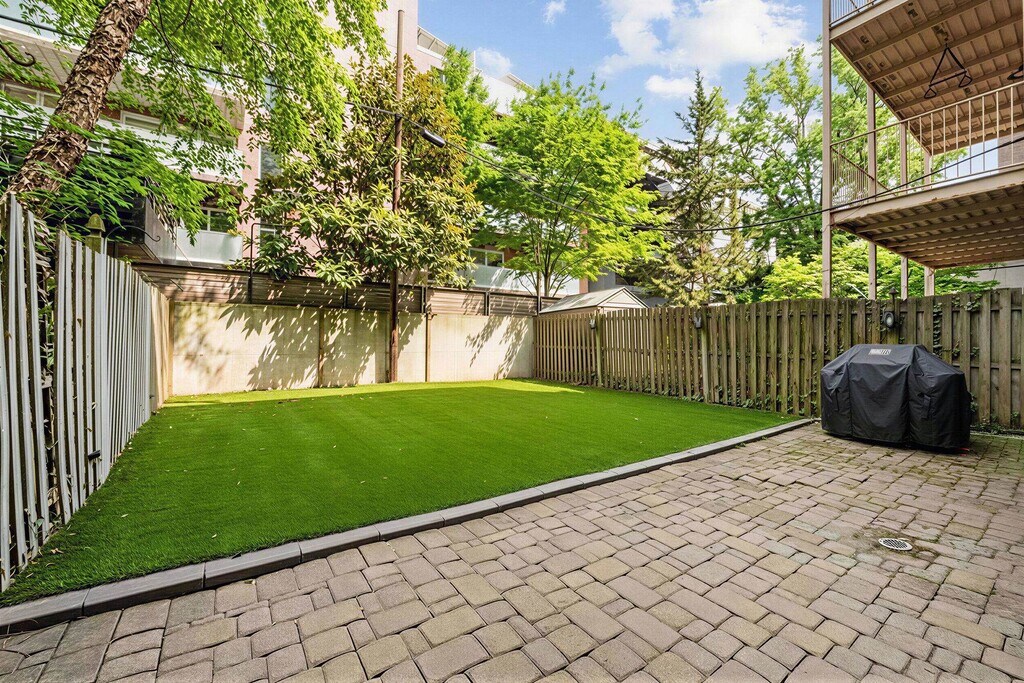 Experience the perfect blend of city convenience and private outdoor living in this prime downtown Hoboken residence, just steps from the PATH train and ferry. This beautifully maintained, turnkey 1-bedroom, 1-bath home offers a rare combination of urban lifestyle with suburban-style outdoor space. Step inside to a thoughtfully designed gourmet kitchen featuring stainless steel appliances, custom cabinetry, granite countertops, and a breakfast bar ideal for casual dining. The spacious living area showcases exposed brick and an inviting layout, perfect for entertaining or unwinding after a long day. The generously sized bedroom provides direct access to your private outdoor oasis—complete with a terrace and split yard, offering multiple spaces for al fresco dining, relaxation, and entertaining with zero-maintenance convenience. FREE common washer/dryer just outside your door add to the home’s ease of living. Located moments from Hoboken’s vibrant shops, restaurants, and waterfront, this exceptional home is offered fully furnished—making your move seamless. Simply bring your belongings and start enjoying everything this unique property has to offer.