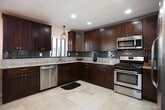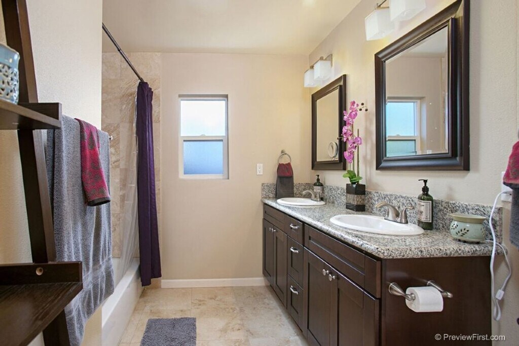 Beautiful spacious home within miles of the beach! Fresh Paint, newer kitchen with dark cabinets, stainless steel appliances, granite counters, travertine floors, stainless steel sink & faucet. New dual pane windows throughout home. Bedrooms have mirrored closet doors with new carpet. Bathrooms have travertine floors, sinks, dark wood cabinet, and brushed nickel lights & fixtures. Lush new landscaping in front w/ sod, sprinklers, & timer. 2 car garage with Epoxy flooring