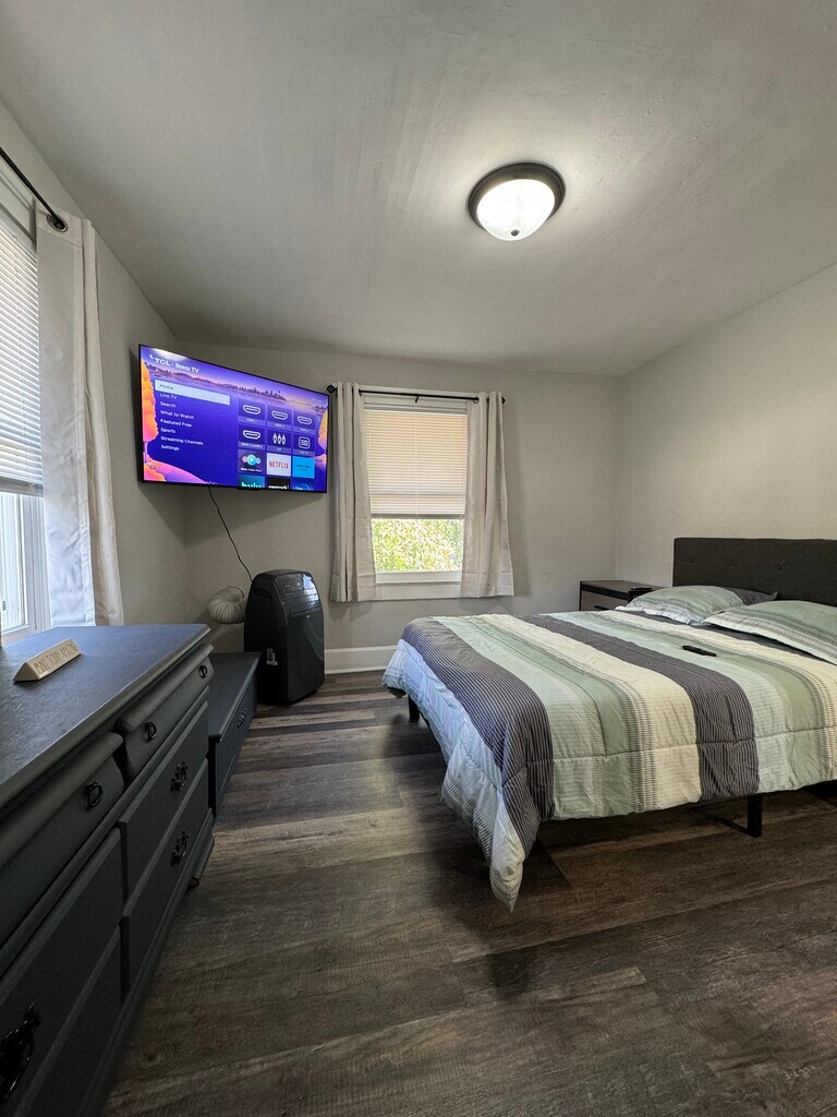 This private, fully furnished bedroom at **1230 N Kealing Ave** offers a comfortable and move-in-ready living option in Indianapolis’s Brookside Park / Near Eastside neighborhood, just east of downtown. The room features a full-size bed, blackout curtains for restful sleep, a TV, and an in-room closet with storage, providing a quiet and functional personal retreat. Guests also enjoy access to shared kitchen and living spaces designed for everyday comfort and convenience. The kitchen is equipped with updated appliances including a stove, oven, microwave, and dishwasher, while the shared living area offers comfortable seating and a Smart TV. High-speed Wi-Fi and a dedicated workspace make the home ideal for remote work or studying, and the property includes standard safety features such as smoke and carbon monoxide detectors and a fire extinguisher. The location is especially convenient, offering easy access to major roads and a quick 10-minute drive to downtown Indianapolis without needing the interstate. Several parks, including Ellenberger, Christian, JTV Hill, Douglass, and Washington Park, are all within approximately three miles. Shopping and daily essentials are close by, with Oxford Square and Linwood Square within walking distance. The home is also near key institutions, including Community Hospital East just two miles away and Ivy Tech about five miles away. Free off-street parking is available at the back of the house, and rent includes all utilities such as water, gas, electric, sewer, heating, and air conditioning, allowing for a truly hassle-free stay. Flexible lease terms are available, making this space an excellent option for travel nurses, healthcare workers, and working professionals. Video walkthroughs and in-person tours are available upon request.
