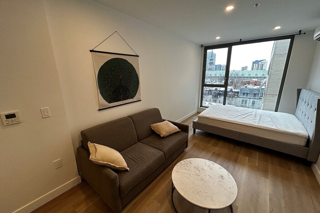 Brand-new studio for rent in Downtown Montréal. Perfect pied-à-terre for a professional or a student. Including five appliances and all services, this loft offers all the amenities required for everyday living. Located just steps from Concordia and McGill universities as well as from the main attractions of downtown Montréal. Lucien-L'Allier metro station is a 5-minute walk away. The Bishop Embassy building offers two elevators, a fitness room, a co-working space, a rooftop terrace and secured access. Experience downtown living at its best, where everything is within walking distance. (Multiple units available)