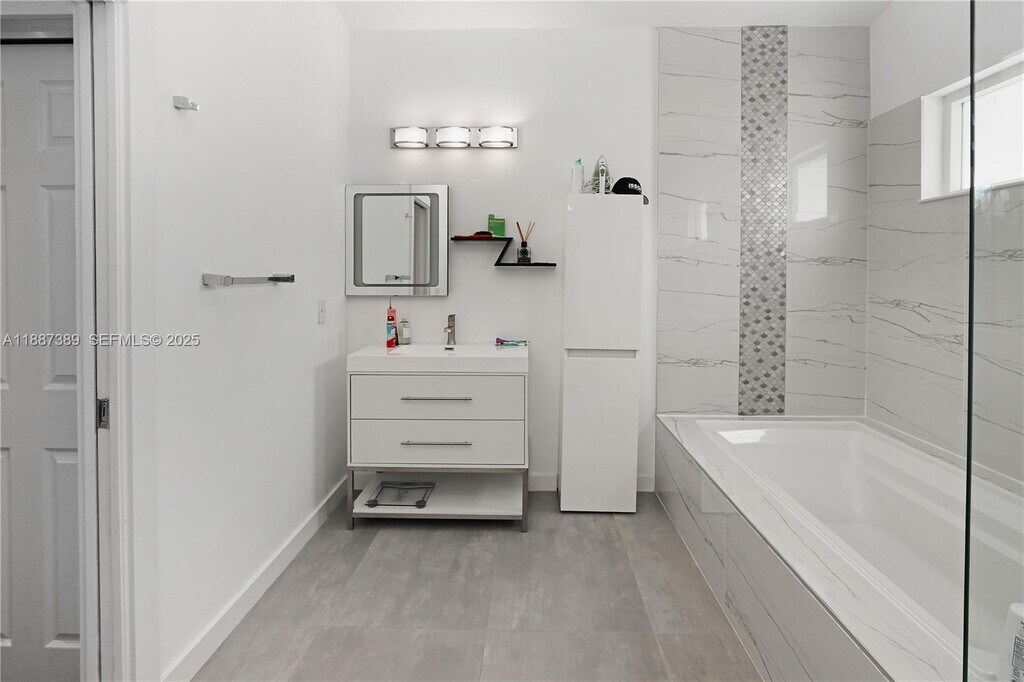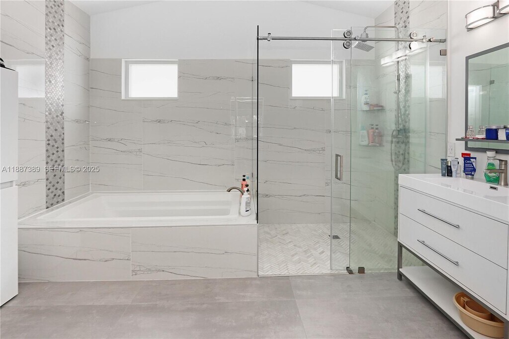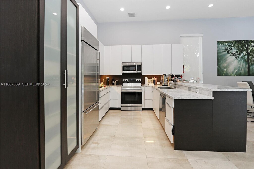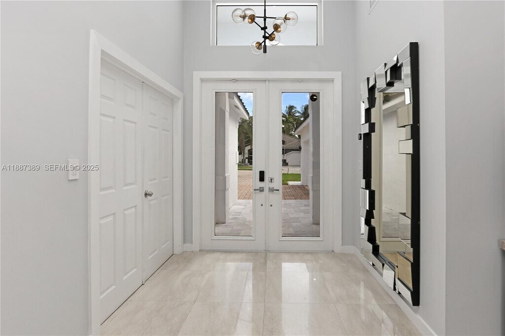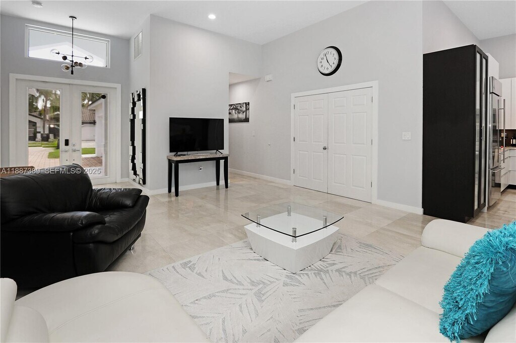This beautifully crafted 3 bed, 2.5 bath home with pool and additional den/office sits on a quiet cul-de-sac just minutes from Hollywood Beach! Vaulted ceilings, marble floors, and expansive windows create a bright and airy atmosphere, while the open kitchen shines with quartz countertops and stainless steel appliances. The split floor plan offers privacy with a versatile den for office or guest use. The primary suite is a luxurious retreat with a sitting area, spa-like bath featuring a roman tub and walk-in shower, and custom closets. A fenced backyard with pool and patio is perfect for entertaining or unwinding. Freshly painted inside and out, complete with a new roof, two-car garage, and ample parking, this move-in ready residence combines comfort with timeless elegance.