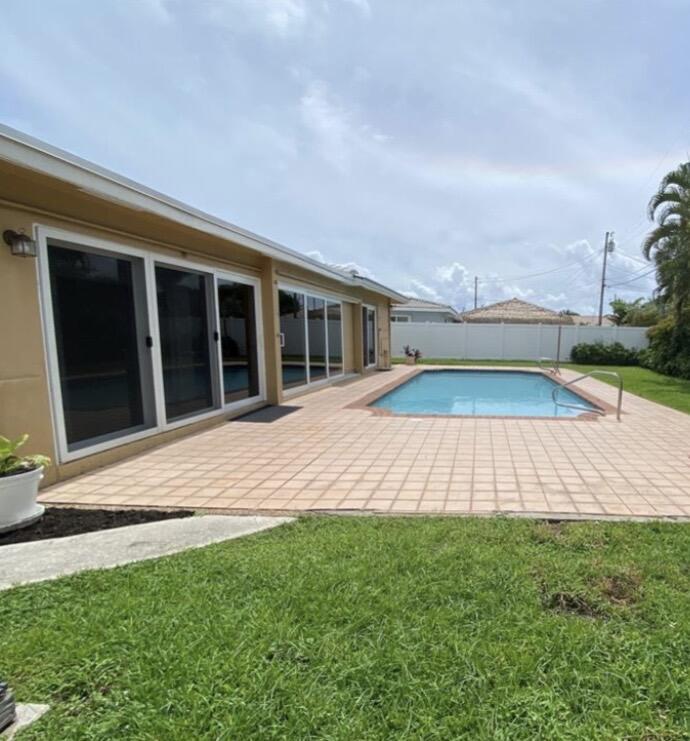 Spacious 3/2 with salt water pool in a fabulous East Deerfield Beach location. Impact windows and doors throughout. Large family room overlooking the pool area. Totally fenced yard with a shed for tenants to use. Double gate on side of home to store trailer or boat. Washer and dryer are not provided but hookup is in place. Super clean and ready for a quick move in. MLS ID B26011989