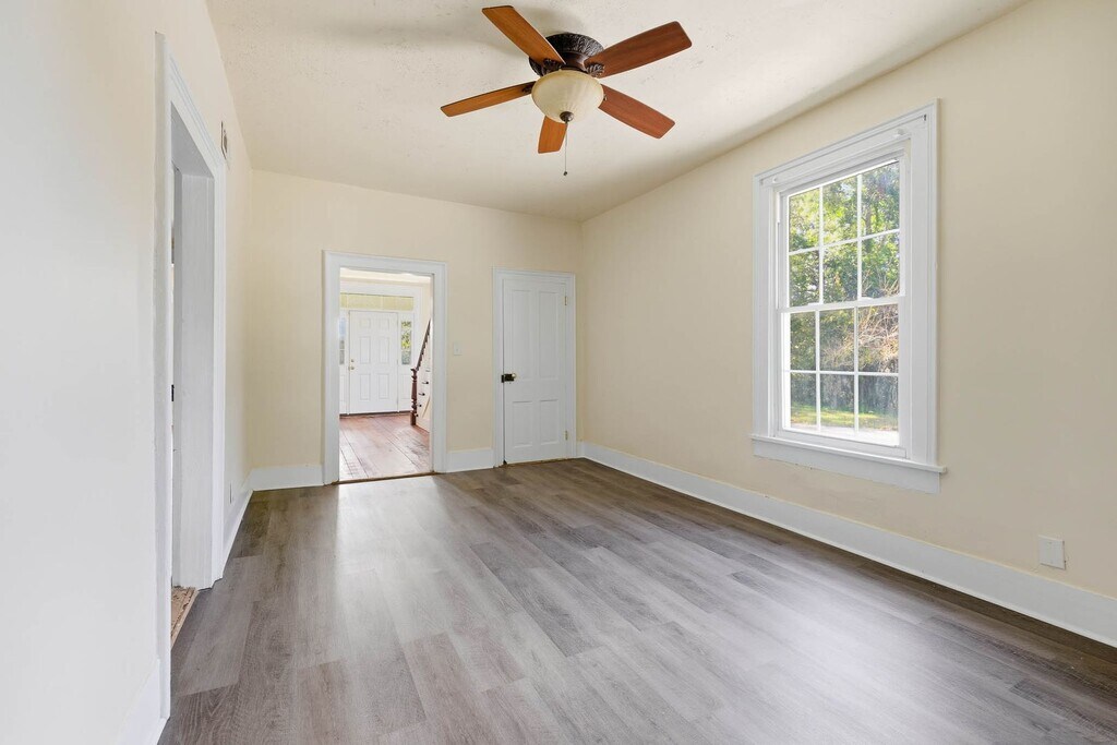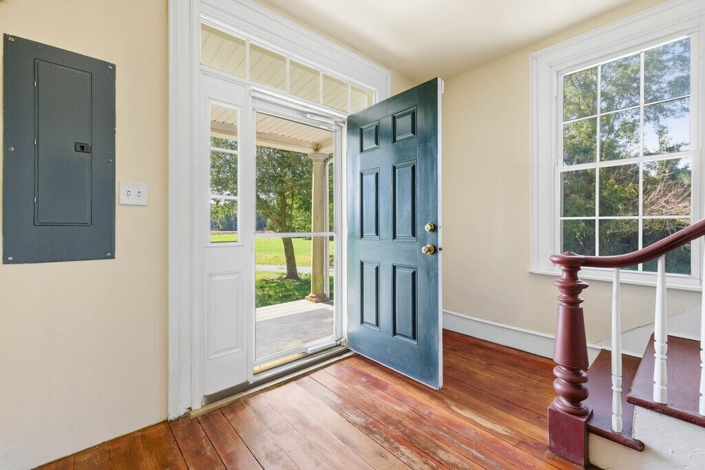 Step back in time and enjoy the beauty of this historic farmhouse built in 1885, offering 3-4 bedrooms, 2 bathrooms and approximately 2,500 sq. ft. of living space filled with character and warmth. The home features original hardwood floors, LVP, and rolled vinyl throughout. A beautiful foyer welcomes you and leads to a spacious dining room, perfect for family gatherings. The large kitchen offers ample space for a full-size table, while the front sitting room and living room provide multiple areas for relaxation and entertaining. Located on the back side of the home are two full bathrooms and a laundry room equipped with a washer and dryer for convenience use. Upstairs, you’ll find three bedrooms and a cozy sitting area at the top of the stairs, ideal for an office or reading nook. This home sits on 166 acres, with tenant use of the area surrounding the home and two sheds located in the back. The barns and remaining outbuildings are not for tenant use. Lawn care is included in the rent. Please note: the remaining acreage is leased to a local farmer and not available for tenant use. Central a/c & heat, all electric. No Pets, No smoking inside dwelling unit; No Housing Choice Vouchers per VA Code 36-96.2. Rent also includes a resident benefit package. Ask for more details.