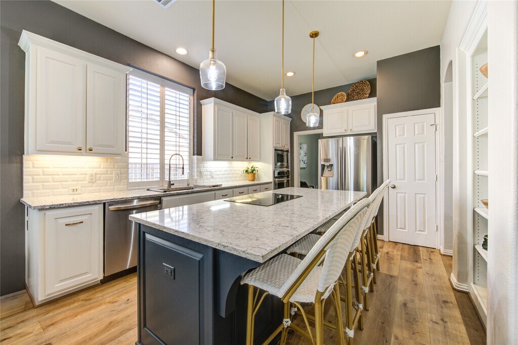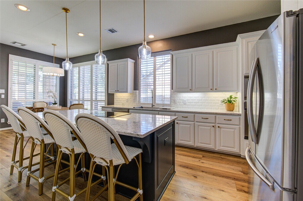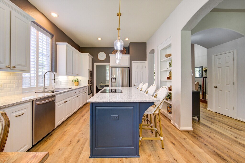 Beautifully renovated 4-bed,3-bath home in cul-de-sac in Bridgeland,built by Highland Homes. Features updated flooring,plantation shutters on main floor,and blinds upstairs. The kitchen has painted cabinets,new quartzite countertops,backsplash,sink,cooktop,pendant lighting,and upgraded LG dishwasher. Large walk-in closets,built-in shelves,and custom storage throughout. Modern bathrooms with new fixtures,sinks,toilets,and fresh paint. Includes a whole house water softener and reverse osmosis system. Comfortable with ceiling fans in all rooms,updated lighting,and stylish updates. The 3-car garage has built-in workbench,Gladiator system,epoxy floor,and EV plug-in. Outdoors,enjoy an extended covered patio,large pie-shaped backyard,and storage shed. Recent roof (2023). Located in CFISD schools: Pope Elementary,Sprague Middle and Bridgeland High school. A perfect combination of luxury and functionality in a thriving community. MLS# 71051195