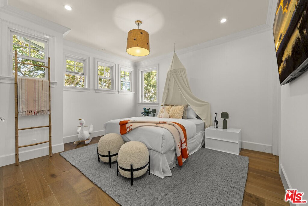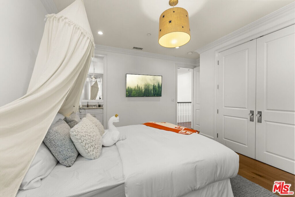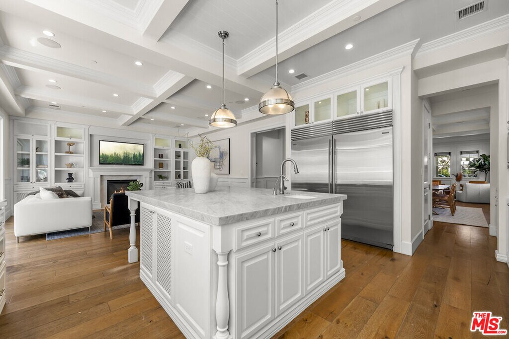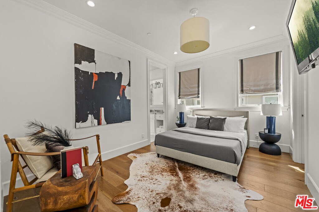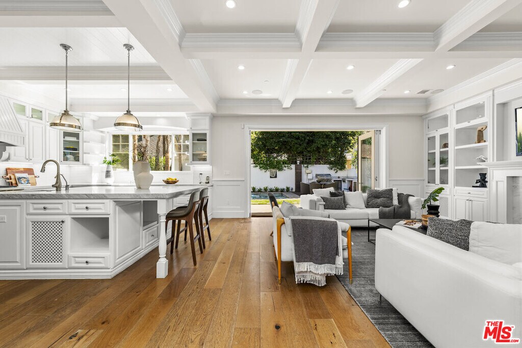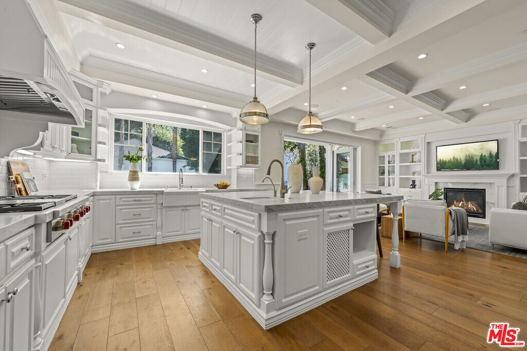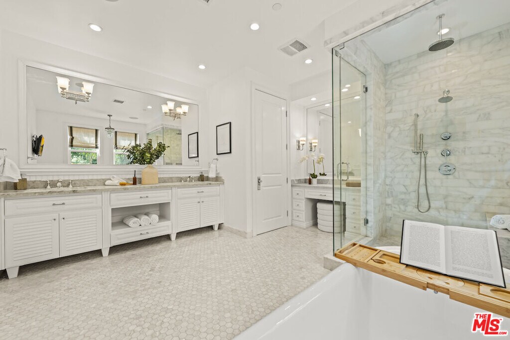 Nestled on a picturesque tree-lined street south of Ventura Blvd, this stunning home resides in the highly coveted Silver Triangle" of Studio City. As you step inside, the beautiful wide plank bleached oak wood floors draw you into the open concept floor plan. This exquisite residence boasts five spacious bedrooms, six designer bathrooms, and high-ceilinged living areas adorned with custom cordless window treatments by Smith and Noble. Discerning buyers will appreciate the elegant stylistic touches, uncompromising craftsmanship, top-of-the-line finishes, and remarkable attention to detail. Noteworthy features include hand-built cabinetry, custom woodwork, wainscoting, crown moldings, designer tile work, a custom wine cellar, and vaulted wood ceilings.Each bedroom offers its own en suite bathroom, with closets featuring custom Elfa shelving systems. The main suite is a sanctuary, complete with a walk-in closet, fireplace encased by custom built-in shelves, vaulted ceilings, surround sound, stunning views of the hills of Studio City, and a luxurious oversized spa-style bathroom equipped with a TV, toilet room, and stand-alone tub.Designed with a professional chef in mind, the gourmet kitchen is outfitted with Carrera marble countertops, a modern farmhouse sink, and stainless steel appliances, including a 72" wide SUB-ZERO refrigerator and freezer, six-burner WOLF range top with griddle, WOLF double oven, WOLF warmer, and WOLF microwave. The expansive kitchen island features a single slab of marble, an additional prep sink, an integrated water filtration system for pure drinking water, extra storage space, and a breakfast bar with ample legroom. The adjacent butler's pantry and additional walk-in pantry with multiple shelves cater to the needs of the most demanding entertainers.Embracing the indoor/outdoor Southern California lifestyle, a bi-fold glass wall seamlessly connects the family room to a landscaped backyard, complete with a dining area, spa, pool, and outdoor kitchen with marble countertops and a built-in BBQ.The dual car garage is equipped with storage closets and high ceilings, providing ample space for all your needs.Available for short term and long term lease. Furnished or unfurnished options available. Pricing may vary for short- term length and furnished options. Please contact for more information.Tenant is responsible for all utilities, the house can be provided furnished or unfurnished" MLS# 26655819