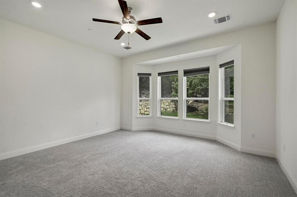 **New Carpet, light fixtures in dining and kitchen and interior paint.** Enjoy the Steiner Ranch lifestyle in this beautiful 2-story home, completed December of 2020, sits on a prime corner lot! Spectacular .21-acre Homesite tucked into the Greenbelt. Situated on a dead-end street, you enjoy minimal through traffic & plenty of private parking behind the home. Soaring vaulted ceilings & abundant natural light, draws your eye to the wall of windows overlooking the backyard. Beautiful living spaces, up and downstairs, this amazing 5-bedroom home has everything you need to entertain in style & enjoy a luxury hill country lifestyle. Quartz counters & stainless steel appliances create a space for entertaining in the open dining and living areas. Wood flooring downstairs, white cabinetry, Silestone & a modern chevron backsplash compliment this expansive Plan. Retreat to the luxurious master suite complete with walk-in shower & tub, dual vanities & walk-in closet. Guest bedroom downstairs with full bath. Three additional bedrooms upstairs, an office, full bathroom & half bathroom for the whole family or guests to spread out. Living area upstairs is spacious and quiet. Step out onto your own private backyard oasis with stellar views & covered patio overlooking the greenbelt. Built with fire suppression system. Massive Game Room & Media Room too! Zoned to award-winning Leander ISD schools, and close to prime shopping, restaurants & entertainment. Enjoy Steiner's world-class amenities including three community centers with pools, lake access, multiple parks, dog park, playgrounds, tennis courts, 20-mile hiking trails & a waterfront Lake Club on Lake Austin. When submitting an offer please use the Residential Condominium Contract. Buyer or buyer's agent to verify all information to be correct.