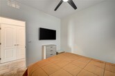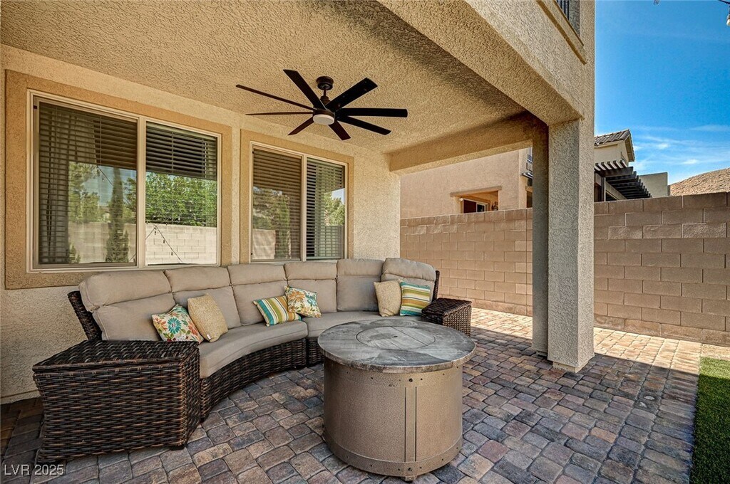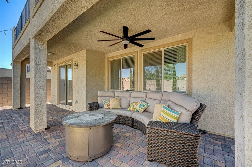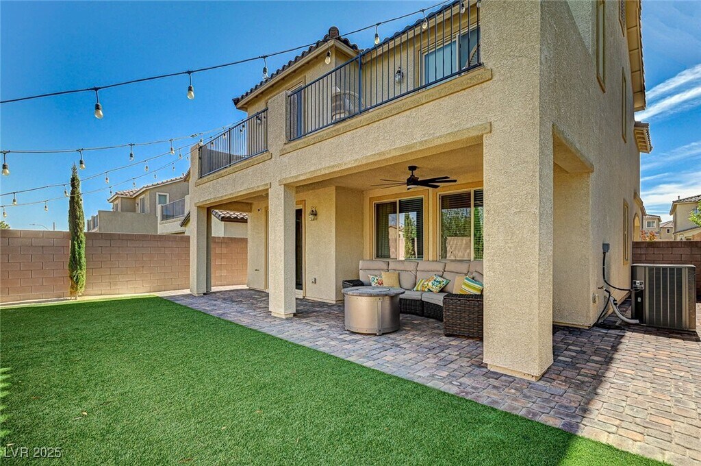 Step into this spacious, contemporary home in the prestigious gated community of Southern Highlands. This 2,638 sq. ft. residence blends modern design with high-end upgrades—offering the feel of a model home without the wait of new construction. Enjoy open-concept living with sophisticated tile flooring throughout the first floor, a chef-inspired kitchen featuring quartz countertops, stylish backsplash, butler’s pantry, and upgraded hardware. The large upstairs loft adds versatile space for work or play. The luxurious primary suite includes a private balcony with breathtaking mountain views, a spa-style bath with a soaking tub and separate shower, and a generous walk-in closet. Outdoor living shines with a full covered patio and balcony, a private backyard with synthetic turf, and no rear neighbors for added privacy. Other upgrades include a tankless water heater, reverse osmosis system, epoxy-coated garage, and beautiful stack stone and paver finishes throughout the exterior.