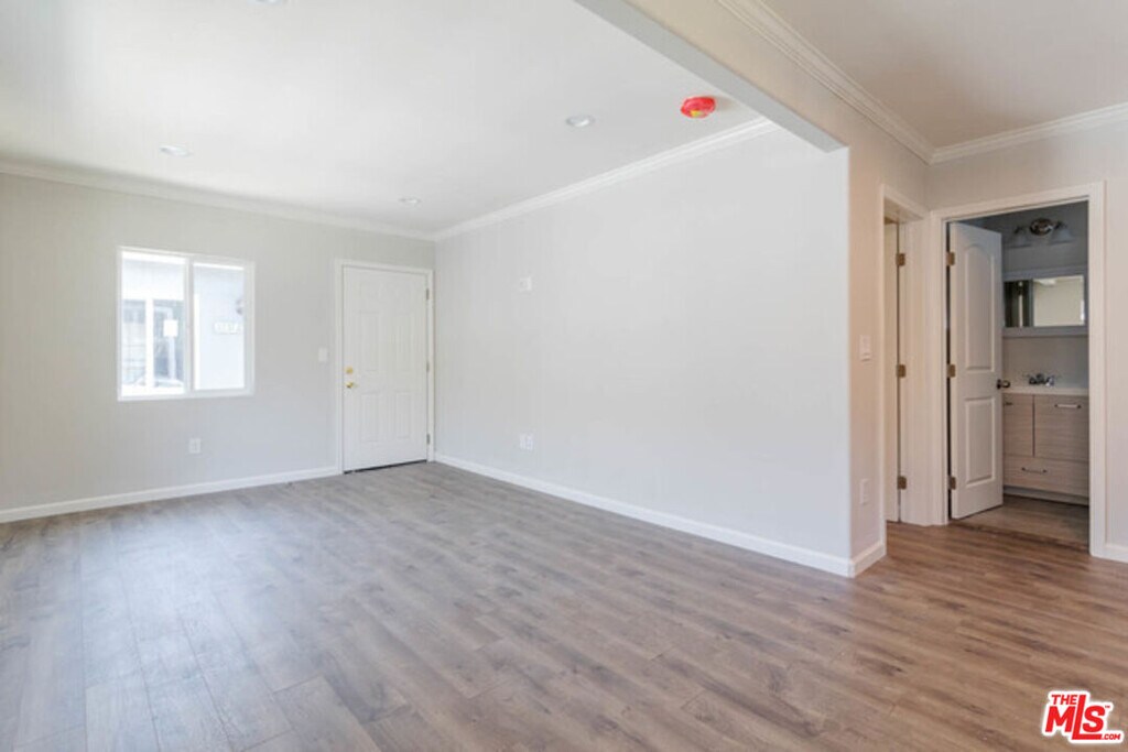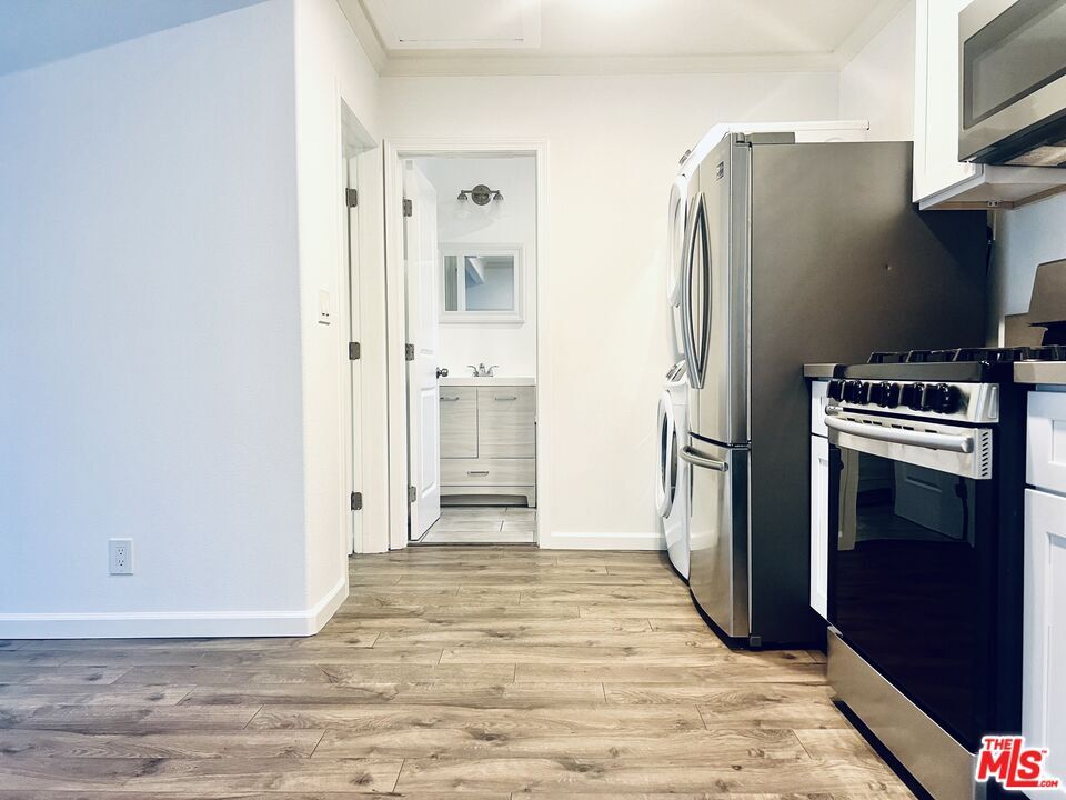 Very unique courtyard building with lots of lush green space available now. One story bungalow with only one shared wall makes this 1 bed 1 bath end unit is a must see. New everything; grey distressed hardwood floors, recessed lighting, custom paint and full sized WASHER & DRYER in unit. Gorgeous kitchen has new white cabinets with soft close drawers, grey quartz countertops and new stainless, microwave, dishwasher, stove and refrigerator. New bathroom with well appointed fixtures and features. New double pane windows throughout and custom blinds. Friendly pets welcome and no deposit or pet fees! Great location for commuters near 2 and 134 freeways. Starbucks, grocery stores, Americana Mall and all Glendale has to offer. Street parking only. MLS# 25620657