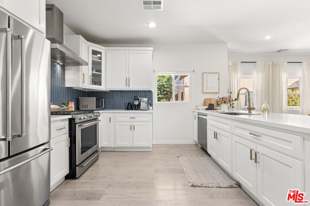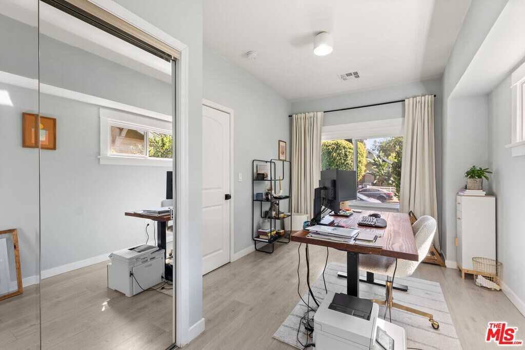 Nestled in a peaceful corner of Vermont Square, this extensively remodeled Craftsman-style home seamlessly combines modern updates with timeless charm. Just a short stroll from the historic Vermont Square Library and a park with a playground, this 3-bedroom, 3-bath residence offers an open floor plan with high ceilings and luxurious wide plank laminate wood flooring that flows throughout. The spacious living areas feature a versatile nook by the front window, ideal for an office or playroom, while the modern kitchen is designed to impress with a large island offering seating for four, sleek new appliances, quartz countertops, and ample cabinetry for all your storage needs. Adjacent to the kitchen, the thoughtfully designed laundry area doubles as a mudroom, complete with additional space for a pantry or extra storage. The two secondary bedrooms are connected by a dual-sink Jack and Jill bathroom, ensuring convenience and privacy, while a powder room provides additional comfort for guests. The primary suite serves as a private retreat with its own ensuite bathroom, featuring a wide double vanity, refined finishes, and generous closet space. Renovated in 2021 and further enhanced with recent updates, this home offers a host of desirable features, including a converted garage that functions as a flexible space, perfect for a studio, gym, or home office, equipped with a portable AC unit. The front yard is adorned with a mango tree and a small kumquat tree, while the backyard is a private oasis featuring both a mandarin and a lime tree, surrounded by drought-tolerant landscaping and a lush grassy area. The gated driveway provides secure parking for up to four cars, making this home ideally suited for both everyday living and entertaining. Minimum 650 credit score and income must be at least 2.5x the monthly rent. MLS# 26647403