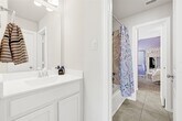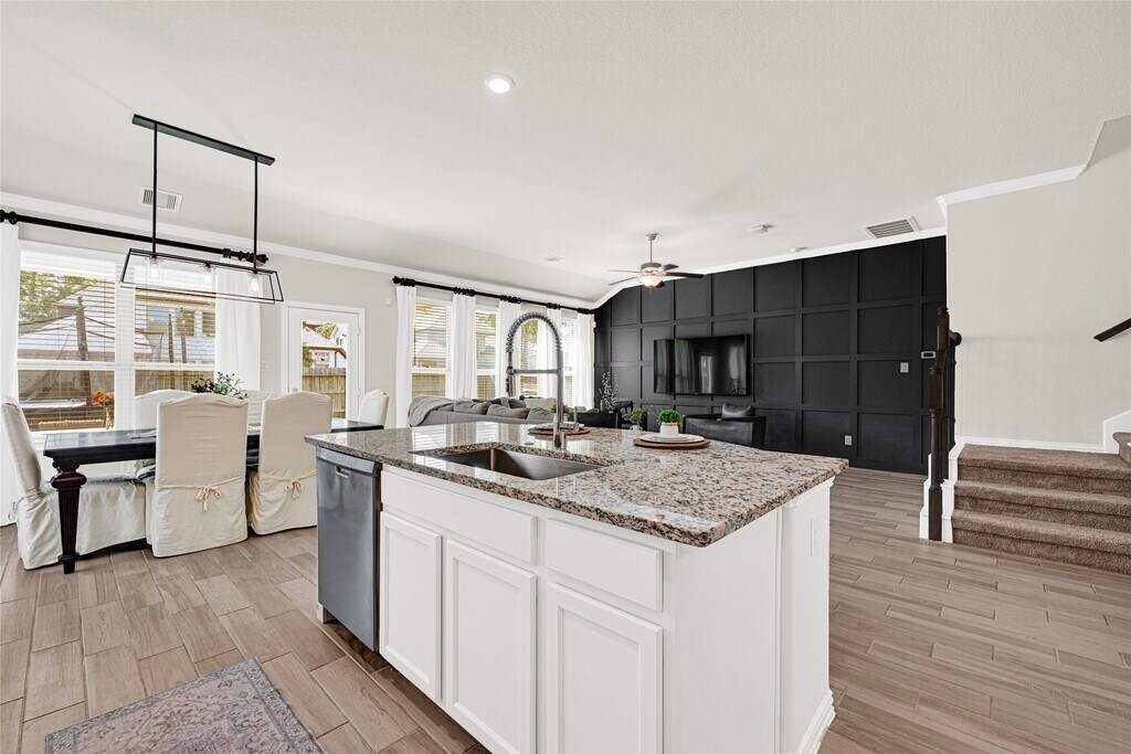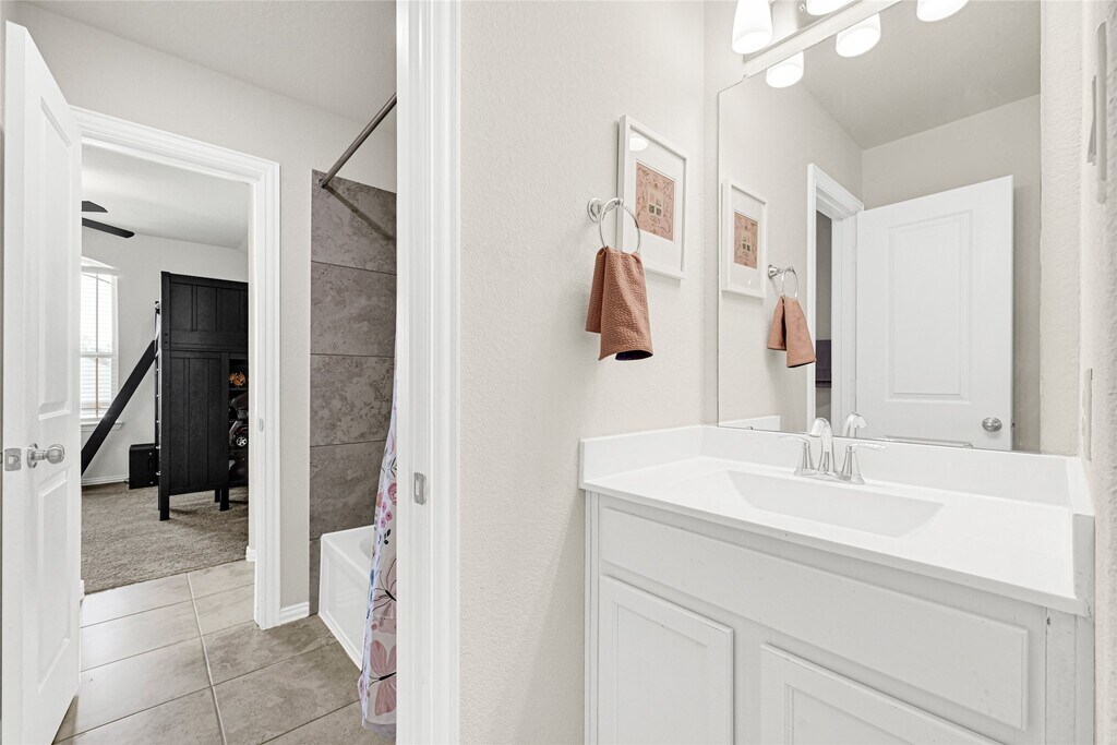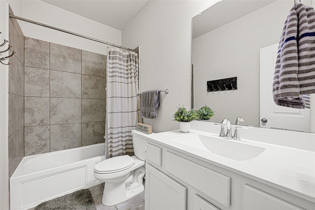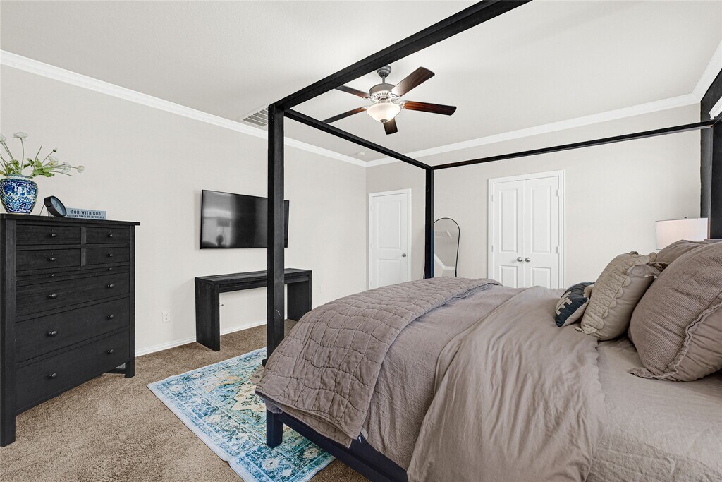 Picture yourself in this beautiful 4-bedroom,3.5-bath home with a second bedroom and full bathroom downstairs in the highly sought-after community of The Groves. The open-concept island kitchen includes granite countertops,a breakfast bar,36" designer cabinets,and stainless steel appliances. The primary suite boasts a spacious walk-in closet,dual sinks,granite countertops,and a separate shower and soaking tub. Upstairs,you’ll find a large gameroom and two additional bedrooms,providing plenty of space for family or guests. Other highlights include wood-look tile flooring in main areas,crown molding,brushed nickel light fixtures,2" blinds,sprinkler system,and a covered patio—perfect for outdoor enjoyment. Energy-efficient features include a 16 SEER HVAC system,programmable thermostat,and radiant barrier roof decking. This is a Wi-Fi CERTIFIED™ smart home that combines comfort,efficiency,and modern convenience. MLS# 63385182