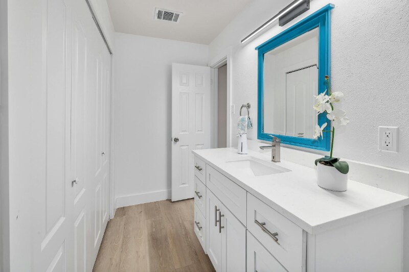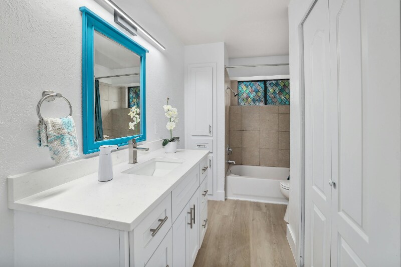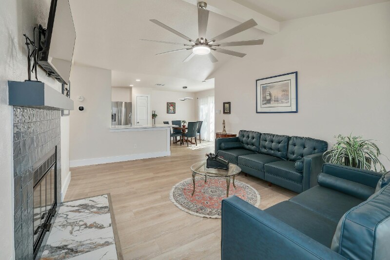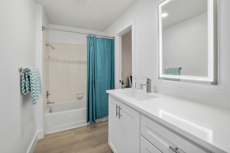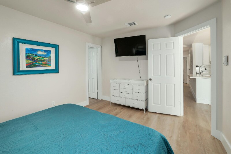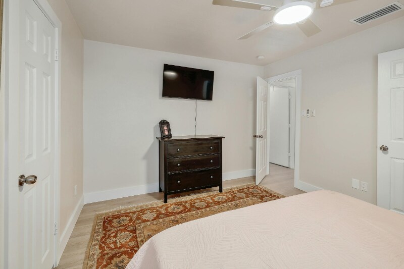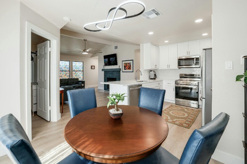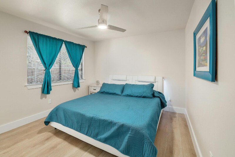 Property Id: 1959300 RENTAL 2-MONTH MINIMUM STAY @ $ 2,900 monthly, FURNISHED Mid-Term Rental, pricing includes all utilities & internet . The heart of the home is the remodeled and expanded kitchen, modern/bright cabinetry, quartz countertops, and title backsplash. Equipped with new stainless-steel appliances (stove has built-in air fryer), an undermount stainless sink, a ducted range exhaust hood and garbage disposal, this kitchen is ready for any culinary experience, flowing seamlessly from the kitchen is the breakfast area. Sunlight pours into the living room through stained windows, complete with a vaulted ceiling and sliding door leading to the deck, fenced back yard. Both bedrooms offer king size foam mattresses (new 8/2024)), adjoining bathroom with new quartz counter vanities with auto sensing faucets. Laundry: Washer/dryer provided. Pets accepted. This home boasts an unbeatable location just blocks from the Domain, Q2 Stadium, and Top Golf, with Mopac just minutes away.
