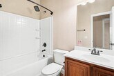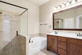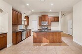 Well maintained single story home with an open and functional layout and neutral finishes throughout. The kitchen features stained cabinetry, granite countertops, tile backsplash, stainless steel appliances, and a large center island overlooking the living and dining areas, making it ideal for everyday living and entertaining. Wood-style flooring runs through the main living areas and bedrooms, with tile in the kitchen, bathrooms, and laundry room. All bedrooms include ceiling fans and natural light. The primary suite offers a spacious bathroom with dual sinks, soaking tub, and separate walk in shower. The secondary bathroom features a clean tub and shower combination with updated fixtures. Additional highlights include a dedicated laundry room, ample storage, and a covered back patio that opens to a fenced backyard. Solid brick exterior and simple landscaping provide low maintenance living. Convenient single story layout in a clean and move in ready home.