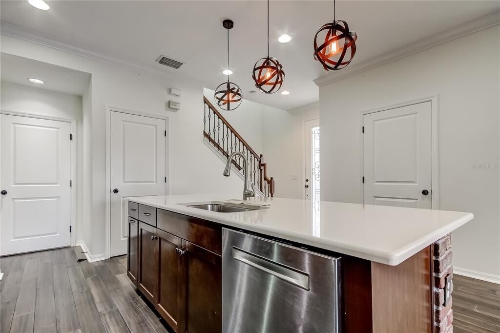 Available Immediately! This stunning two-story townhome offers 3 bedrooms,2.5 bathrooms,and a 2-car garage in a gated,maintenance-free community with walking trails and a dog park. Step inside to soaring 9’4” ceilings and an open-concept layout filled with natural light from tall windows and glass patio French door leading to a screened lanai with tranquil pond views. The spacious living and dining area flows seamlessly into the upgraded kitchen,featuring 42” Timberlake Sonoma Maple Espresso cabinetry,Quartz Cloud countertops,a brick accent island,beautiful backsplash,and high-end Whirlpool and Bosch stainless steel appliances. Enjoy added touches throughout,including wood floors,a custom wood accent wall,crown molding,and rod-iron stair rails. Upstairs,the luxurious owner’s suite includes a walk-in closet and a spa-inspired bath with double quartz vanities,glass shower featuring stone flooring and floor-to-ceiling tile,and private water closet. Two additional bedrooms share a Jack-and-Jill bathroom,and a spacious loft plus convenient upstairs laundry complete the upper level. Additional highlights include a Nest thermostat,water softener and filtration system,Tesla charging outlet,washer and dryer,and a bonus room for flexible living. Rent is $2,800/month. Small pets considered with $250 non-refundable pet fee. First month’s rent and security deposit required with good background check to secure lease. A refundable key deposit applies for gate,garage openers,and front door access. Tenant responsible for minor repairs under $150. Enjoy low-maintenance living and serene water views front and back—ready for immediate occupancy! MLS# TB8442709