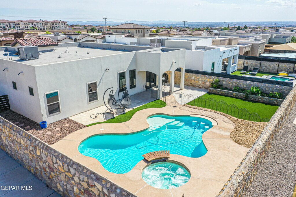Gorgeous Palo Verde resale with fantastic floorplan situated on spacious corner lot! Beautifully landscaped front and back yards PLUS a super fun salt water pool and hot tub to enjoy year round. Three bedrooms each with their own full bath. Amazing kitchen with plenty of counter and cabinet space. Spectacularly maintained. Newer tankless hot water heater,fresh landscaping. Climate controlled,insulated garage adds 441 potential sq ft of living enjoyment.