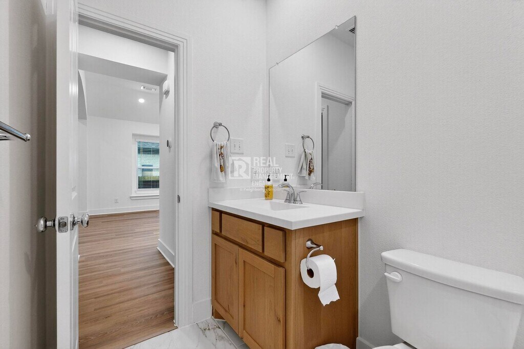 Experience modern living in this brand-new home located in the growing Bel Air Village community of Sherman, offering a thoughtful blend of style, comfort, and convenience. This beautifully designed residence features three bedrooms, two and a half bathrooms, and a dedicated study—ideal for remote work or a quiet flex space. The heart of the home is the gourmet kitchen, showcasing quartz countertops, stainless-steel appliances, a gas cooktop, a large center island, and elegant pendant lighting, all flowing seamlessly into the open-concept living and dining areas with warm wood-look flooring. The standout feature is the spa-inspired primary suite, complete with a sleek freestanding soaking tub, an oversized glass-enclosed walk-in shower, and a spacious walk-in closet. Outside, enjoy a private fenced yard and covered patio on an approx. 4,878 sq ft lot, perfect for relaxing or entertaining. Bel Air Village offers walkable green spaces, trails, and planned amenities, while being just minutes from US-75, making commutes to Denison, McKinney, and the Dallas/Plano employment corridor convenient. Nearby points of interest include Sherman Town Center, Herman Baker Park, Fairview Park, major retailers, local dining, and schools within the Sherman ISD. This 2025-built home delivers the rare opportunity to lease a fresh, move-in-ready property with premium finishes in a rapidly developing North Texas community — schedule your tour today! Schedule Showing Online: Brokers and third-party showing agents can schedule from: