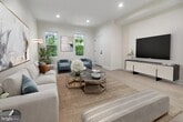 Welcome home to this 3 bedroom, 2.5 bathroom newly renovated two level townhome featuring natural lighting, an open floor plan with modern kitchen, quartz countertops, hardwood flooring throughout. This is an entertainer's dream. Comes with one off Street parking space in the rear. Rent displayed includes one month free. Please note pictures may be of a similar unit and have been virtually staged.