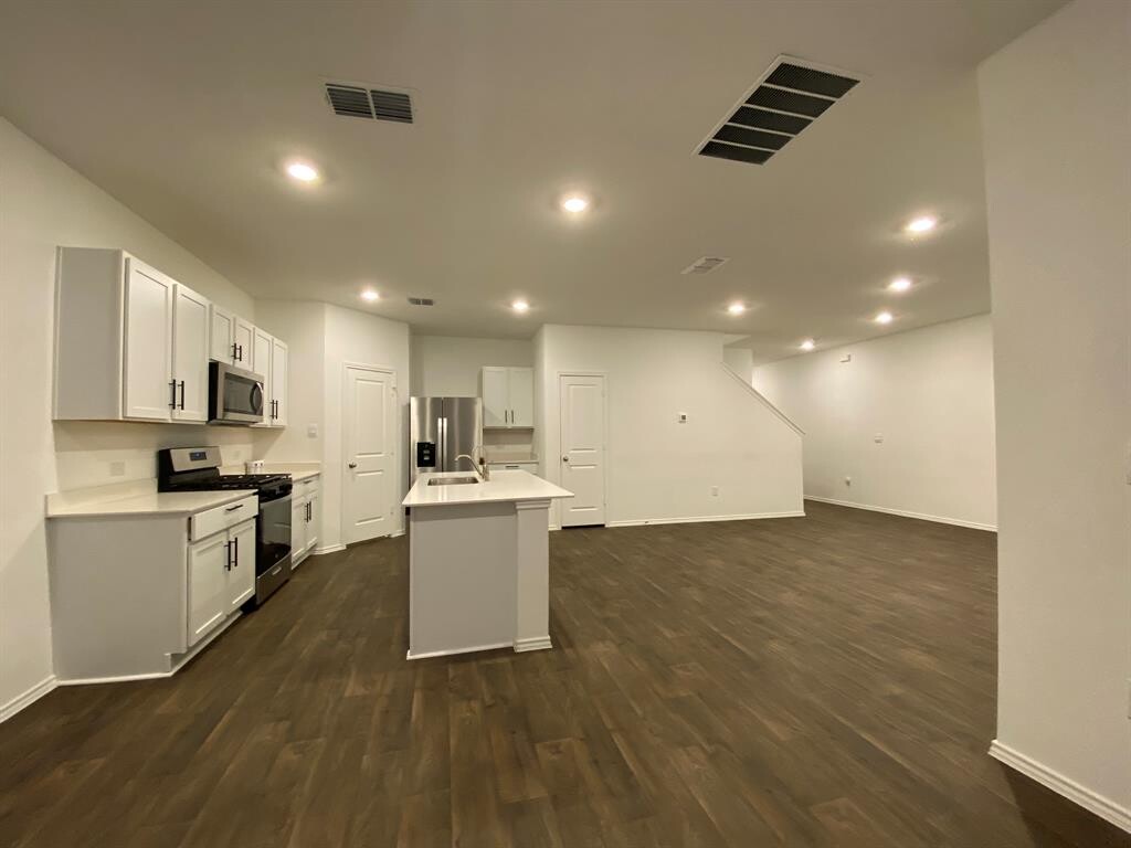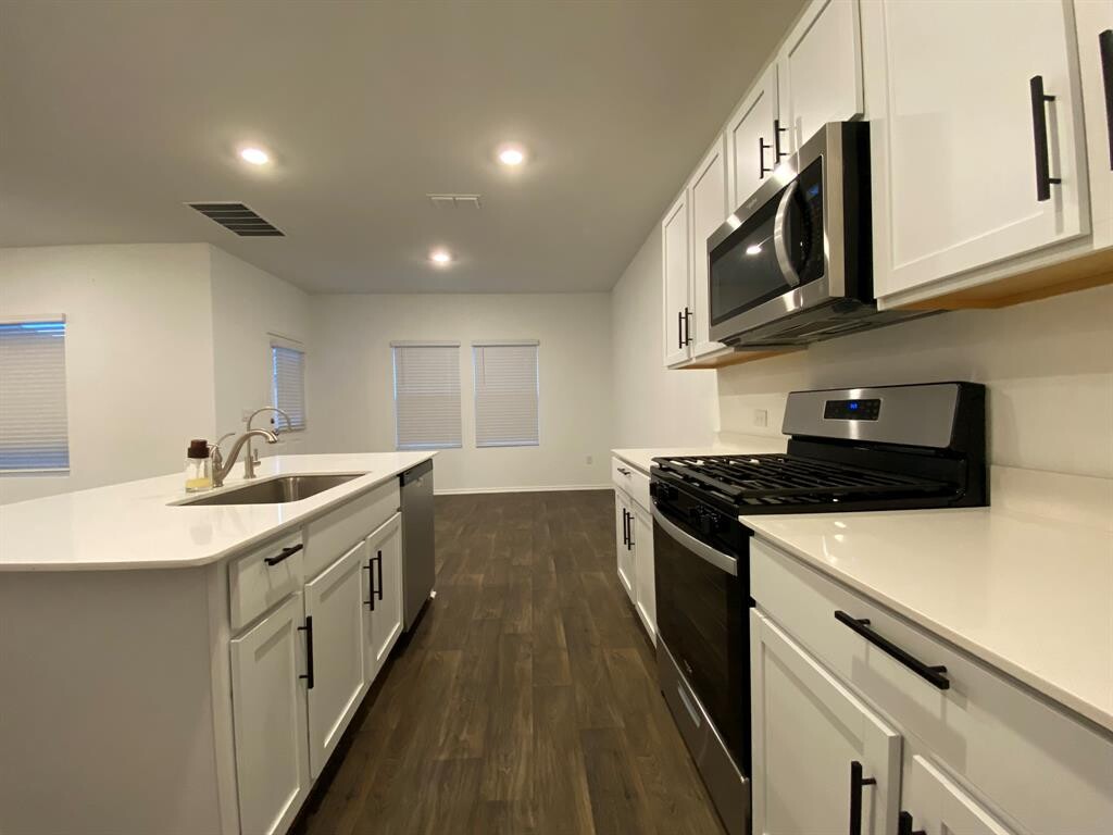 Two story floorplan offering 1,952 sq. ft. of living space across 4 bedrooms and 2.5 bathrooms. As you enter the home through the foyer, you'll see the convenient half bath next to the stairwell. Continuing into the home you will enter the wide-open living space. The family room flows into the dining area and kitchen which features quartz countertops, stainless steel appliances, and a large kitchen island. This space offers tons of natural lighting and looks out to the spacious covered patio. Upstairs you will find all of the bedrooms, giving the home a more private feel. The main bedroom offers a large walk-in closet and the main bathroom a walk-in shower.