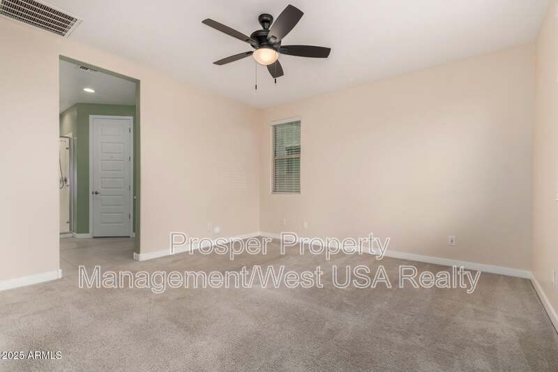 Discover this beautifully updated 4-bedroom rental home ready for you to move in and enjoy Phoenix-area living at its best! Step inside to an inviting, open-concept floor plan flooded with natural light. The home boasts durable tile flooring throughout the main areas, modern window blinds, and fresh neutral paint for a clean, contemporary feel. The refreshed kitchen is a standout, complete with recessed lighting, a convenient pantry, stainless steel appliances, ample white cabinetry, sleek quartz countertops, and a spacious breakfast bar perfect for casual meals or entertaining. The primary suite, accessed through double doors, offers plush carpeting, a private en-suite bathroom featuring dual vanities, and a generous walk-in closet. The additional bedrooms provide ample space with easy-to-use sliding door closets for smart organization.